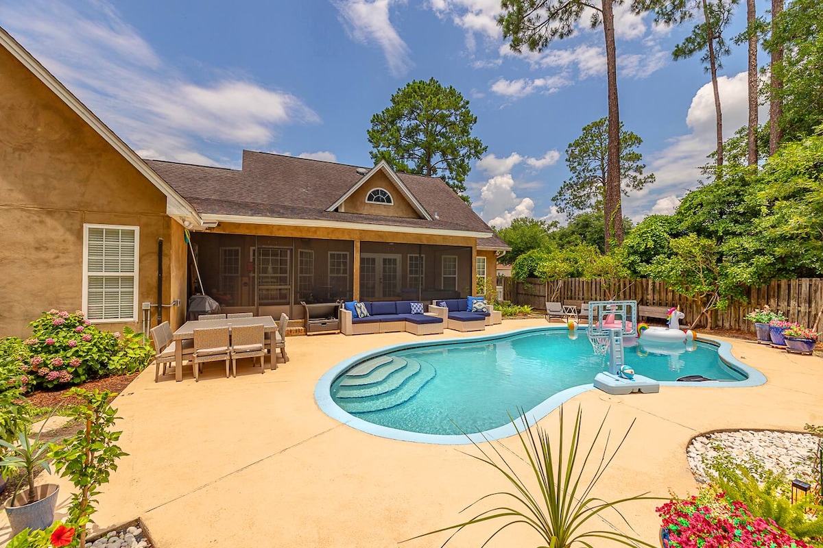 最近全面改装され、裏庭にエンターテイメントゲームハウスがあるこの美しい家を歓迎します。 ビリヤード台、エアホッケー台、卓球台、ダーツボードなど、楽しいエンターテイメントが揃っています。寝室にはすべてシーリングファンとスマートテレビが備わっています。高速Wi-Fi完備。パティオ家具が置かれたスクリーン付きのポーチと、グリルに最適な広い屋外パティオエリアがあります。お子様はこの素晴らしい家をきっと楽しんでいただけます。 ペットは禁止です。