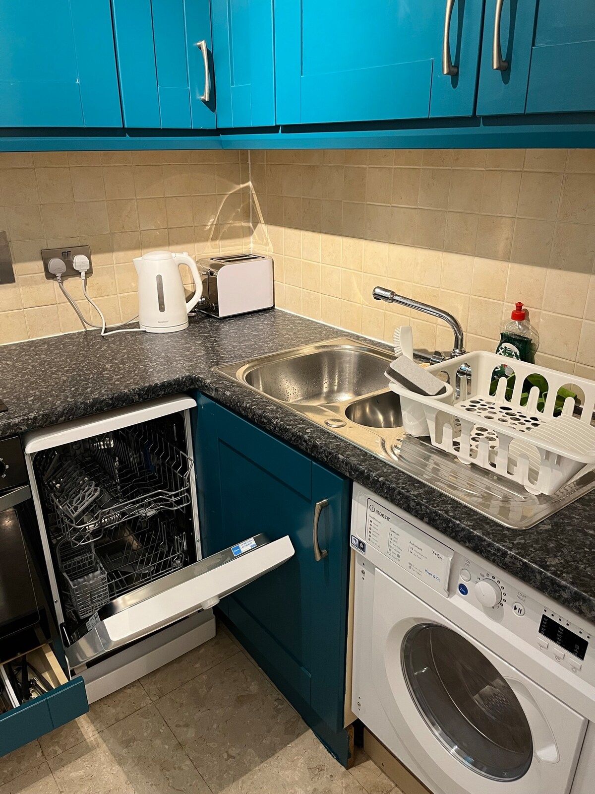 Refurbished, self-contained 2 bedroom & bathroom, living room/kitchenette, double glazing, 45m2 apartment. Well-equipped kitchenette for self-catering. We provide laundered & ironed linens, towels, tea towel, starter toiletries, tea, coffee, sugar, marmalade, dish washer tablets, laundry tablets, kitchen roll & all-essential Wi-fi Our wifi speeds - Download = 74.5Mbs, Upload = 43.5Mbs. We offer a residential wifi system for residential entertainment.