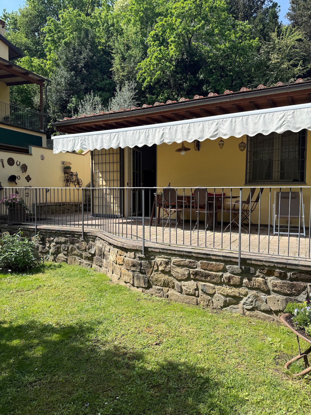 フィレンツェのすぐ近く、田舎の静けさの中、町よりもはるかに涼しい場所にあります。 ゲスト専用の庭に囲まれた一戸建ての家です。 1階には、キッチンエリア付きダイニングルーム、ベッドルーム、バスルームがあります。 下の階には、ソファーとプレイルームを備えたリビングルームがあります。 庭には、バーベキュー、屋根付きエリア、バスケットボールの遊び場があります。 生け垣に囲まれているので、プライバシーが確保されています。 専用アクセスのプライベートパーキング。