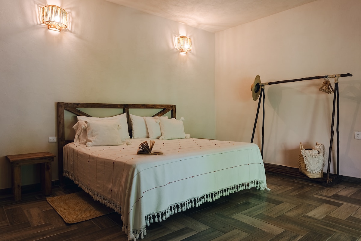 イラはコスメル島の有名な自然の美しさを反映しています。 敷地内に入ると、特別な場所にいるような気分になります。 イラは庭園に囲まれ、大きな窓と広々とした空間が特徴です。 フェリーから徒歩5分の場所にあり、レストラン、ショップ、メキシコ文化の豊かさを体験できる市営公園に近いです。 各客室には柔らかいリネン、高速Wi-Fi、Netflix、エアコン、照明が備わっており、仕事、読書、リラックスできます。
