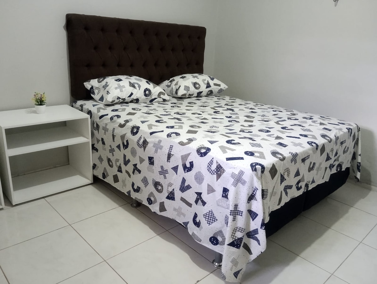 注:パーティー/イベントのレンタルは行っておりません。音響機器の使用は禁止されています。 敷地面積20x40m、日陰、プール、バーベキュー付きデッキ、キッチン。キャビネット、ガスボンベが設置された5つのコンロ、ミネラルウォーター2本、飲料水、エアコン付きの寝室2室(うち1室はスイート)、共用バスルーム(両方のバスルームに温水シャワー付き)、ハンモックを設置できる複数の場所があるポーチ、冷蔵庫。 寝室1(スイート):ダブルベッド1台、ハンモック1台。 ベッドルーム2:ダブルベッド1台、シングルベッド1台、ハンモック1台、シングルマットレス2枚。