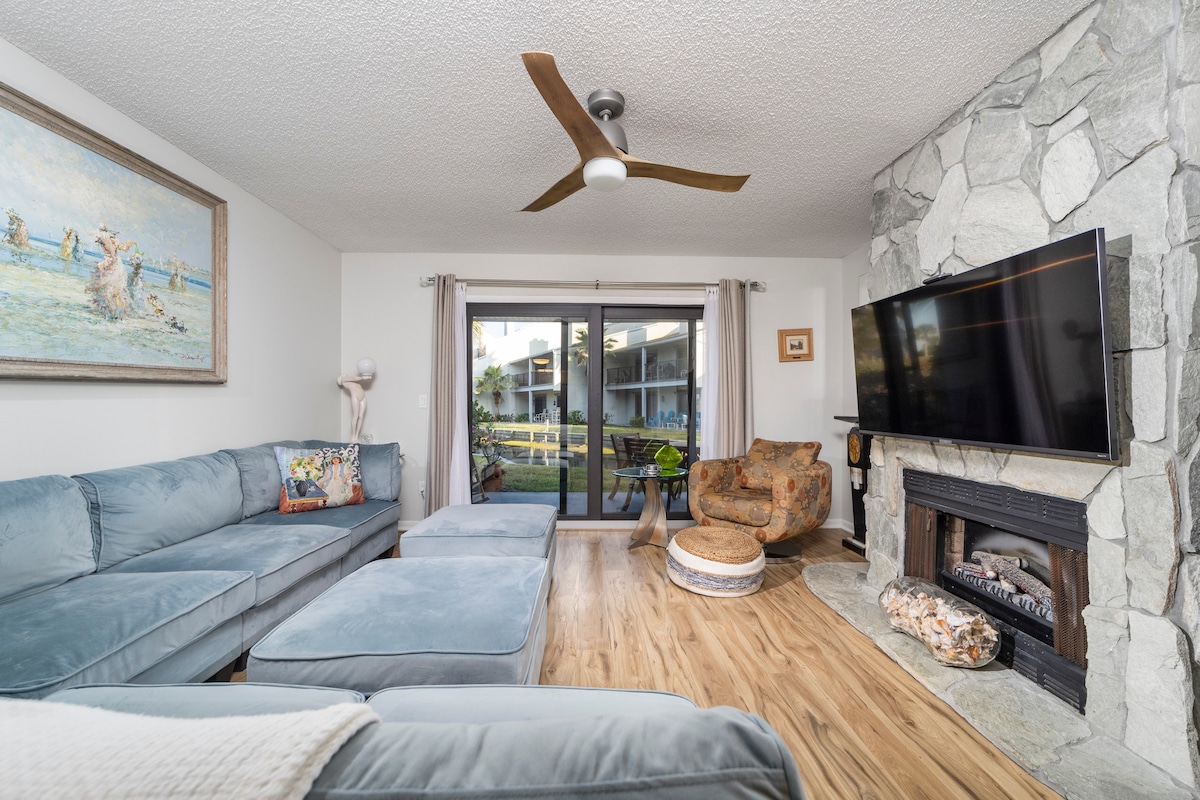 Skipper’s Hideaway is a charming beachside retreat that sleeps up to six, with a king bed, queen sofa pull-out, and twin daybed with trundle. Located on the ground floor for easy access, the condo offers a partial Atlantic Ocean view from the living room window. Just steps from Crescent Beach, this peaceful spot is perfect for relaxing. For more excitement, the shops, restaurants, and nightlife of downtown St. Augustine are only a 15-minute drive away.