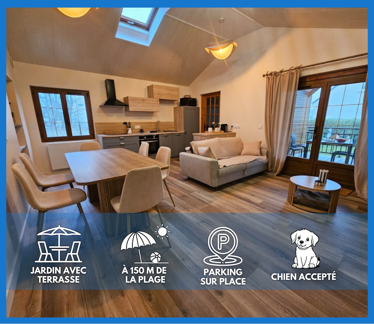 理想的なロケーションにある、上陸地の中心部にある、海から1 kmの場所にある宿泊施設。 田舎道の端に位置するラロの家は、典型的なノルマンディー風の古い農家の建物です。 独立した家、囲まれた庭、隣人なし、絶対的な静けさ。 2020年に完全に改装されたこの宿泊施設には、4つの独立した寝室、2つの美しいシャワールーム、ダイニングルームとキッチンを組み合わせた非常に広いリビングルームがあります。 最低3泊からご利用いただけます。