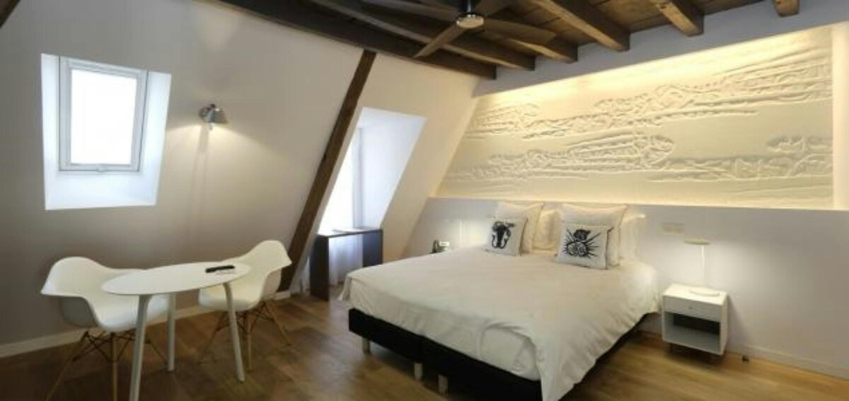 クルーズ川のそばの屋根裏の2階にあるワンルーム4号室です。現代的なスタイルで装飾され、デザイナーズ家具が備わっています。床はオーク材の寄木細工です。キッチン(食器洗い機、オーブン、冷蔵庫、食器などが完備)、ネスプレッソマシン、収納ワードローブ、机、ダイニングテーブル、アームチェア2脚、ダブルベッド(160 cm )、ラジオ付きの32インチスマートテレビが備わっています。