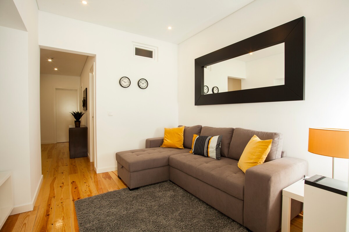 スタイリッシュで広々とした、中心部にあるスタジオアパートメント: 🛌最高の睡眠の質:快適なキングサイズベッド、豪華な枕、柔らかい白いリネン 🚿高品質のタオルと無料のトイレタリーを備えた非常に広い大理石のバスルーム ❄️エアコン👗洗濯機と乾燥機🛗エレベーター 👨🏻🍳キッチン🍷多くのレストラン、ショップ、カフェがある活気のあるエリア📍シアード、バイロ・アルト、カイス・ド・ソドレまで徒歩圏内🚋28番路面電車のすぐそば 📶 Wi-Fi 📺 200以上のHDチャンネルを備えたスマートテレビ🧼ピカピカに清掃 🛒スーパーマーケットまで1分