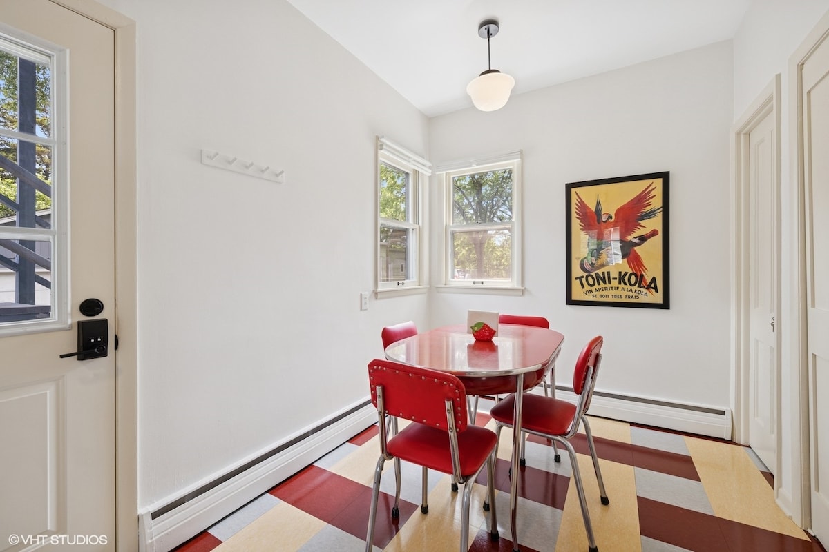 1911年にドイツの石工が建てた魅力的で歴史的な家でのご宿泊をお待ちしております。 この上階ユニットのアパートは、2018年にヴィンテージの美学で愛情を込めて修復された広々とした1,100平方フィートのお部屋です。 「アパート」への専用玄関から、居心地の良いベッドルーム2室と、ヴィンテージ風でありながらモダンなバスルーム1室(ウォークインシャワー付き)につながります。 広いリビングルーム、ダイニングエリア、明るく清潔なキッチンで、ご自宅にいるような気分になります。天井は9フィートで、自然光がたっぷり差し込んでいます。