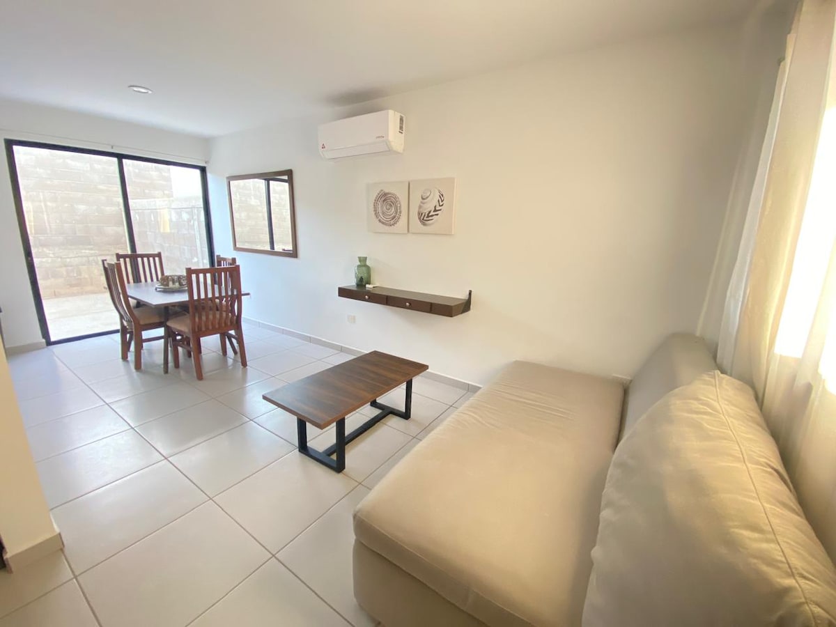 空港、Hospital Ángeles、Plaza Ceiba、コストコに近い、最高のロケーションにあるプールの前の1階の新しいアパートメント: - 2つの寝室:メインの寝室にはクイーンベッド、セカンダリーの寝室にはダブルベッド - 設備の整ったキッチン - 4K 55インチテレビ - フルバスルーム - プール、屋外テーブル、コワーキングスペース - 洗濯機と乾燥機を備えたサービスルーム 快適で便利なご滞在をお楽しみください。お待ちしております!
