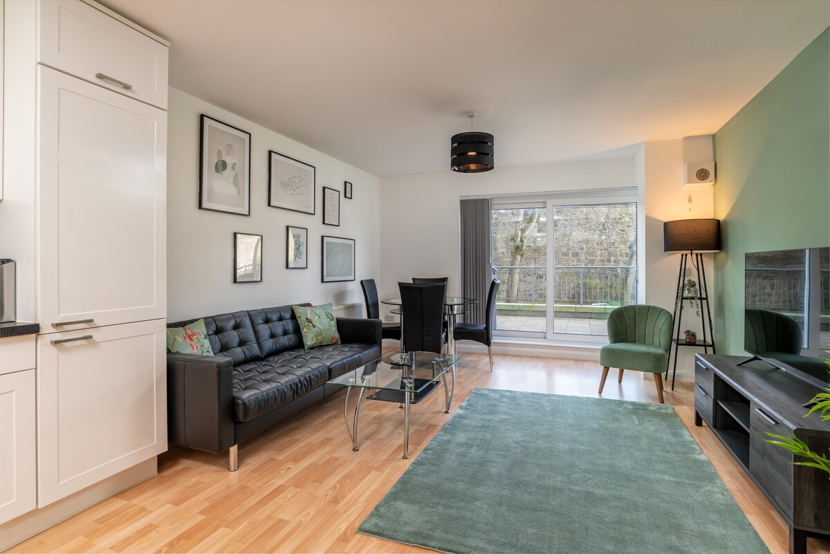 アバディーンのオリジナルの花崗岩の建物の1つにある明るく風通しの良い1ベッドルームのアパートで、ダブルベッドルーム、完全に機能するキッチン、バスルーム、チェスターフィールドのソファ、フラットスクリーンのオンデマンドテレビ、Wi-Fi、ノートパソコンに適したワークデスクがあります。