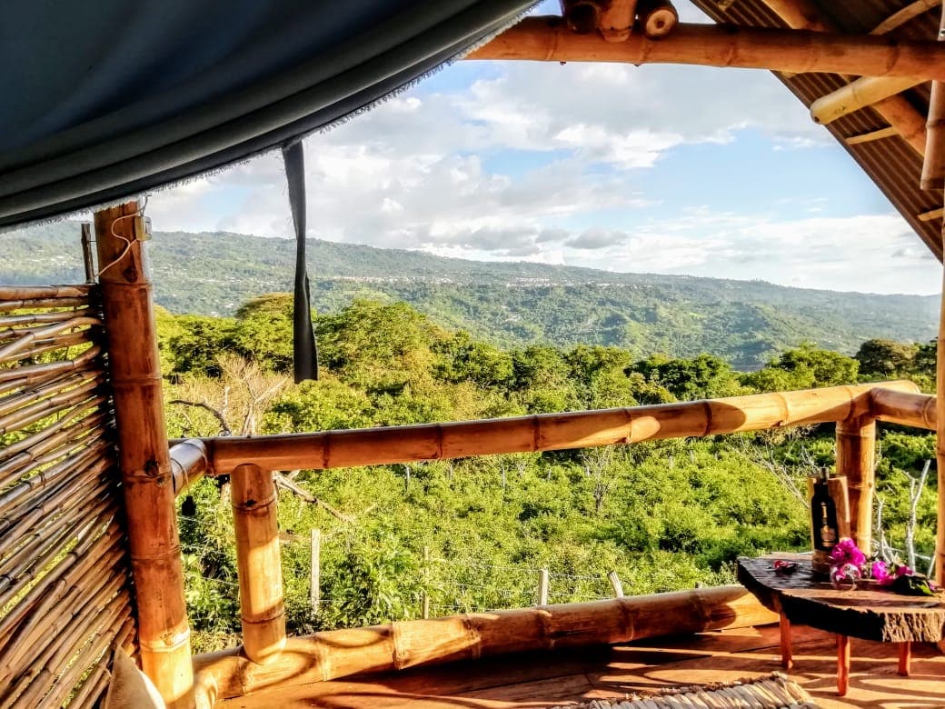 コロンビアのコーヒー産地にある、カップル向けに設計された豪華な三角屋根のキャビンです。専用ジャグジーを楽しみ、カタマランのネットでリラックスし、自然とコーヒーの香りに囲まれて目を覚ましましょう。温かみのある木製のインテリア、美しい景色、完全なプライバシーがロマンチックで穏やかな体験を生み出し、記念日、ハネムーン、または2人だけの静かな旅行に最適です。