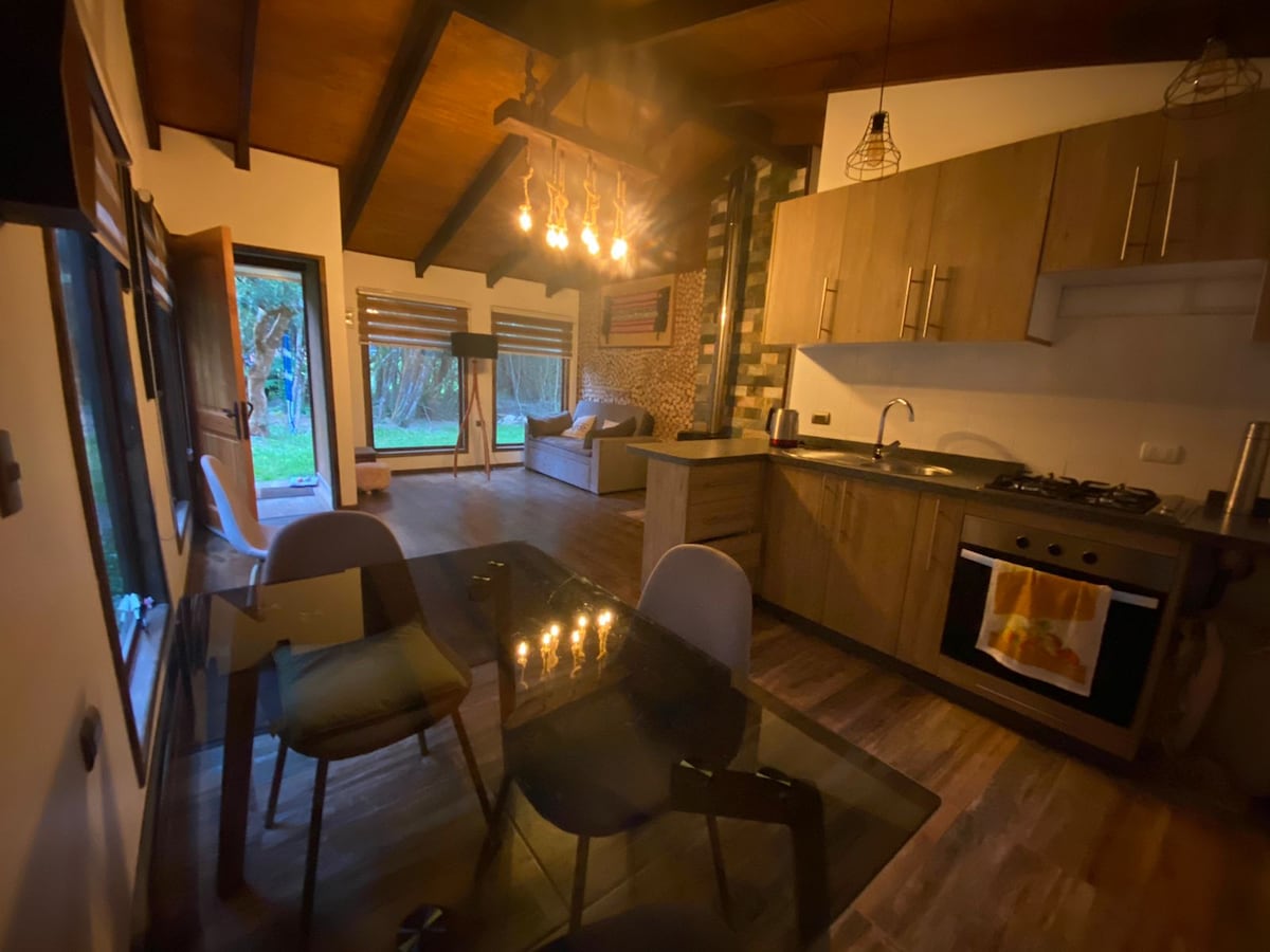 天然の木々に囲まれた、小川のそばにある、大きな壺(別売)のあるキャビン。バルディビアから30分の沿岸部、クリニャンコに位置しています。 2〜3名様用のキャビンで、ダブルベッドとソファベッドが備わっています。エアコン付き暖房とWiFiインターネット ゲストはエステロにアクセスでき、海まで徒歩です。 キャビンはオンコル公園、ピロルクラビーチ、プヌカパから20分です