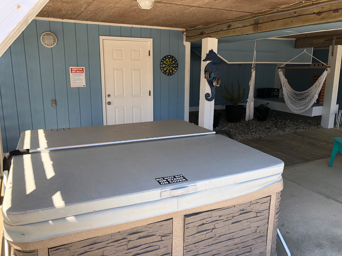 アルバマールサウンドの森にあるこのユニークで静かなビーチコテージで、ごゆっくりおくつろぎ🏝️🌞🐬ください! この隠れた名所は、田舎の休暇とビーチのユニークな組み合わせを提供します! このロマンチックな隠れ家や家族旅行では、野生動物が本当にたくさんいます。イルカ、カワウソ、カメなどを見ることができます。 3つの居心地の良いベッドルーム、新しいジャグジー、専用ドック、カヤック、各部屋にある眺めの良い個別バルコニーをお楽しみください! エリザベスシティのダウンタウンとアウターバンクスの間にあり便利です。 リラクゼーションと静寂があなたを待っています!🌊🏖️☀️