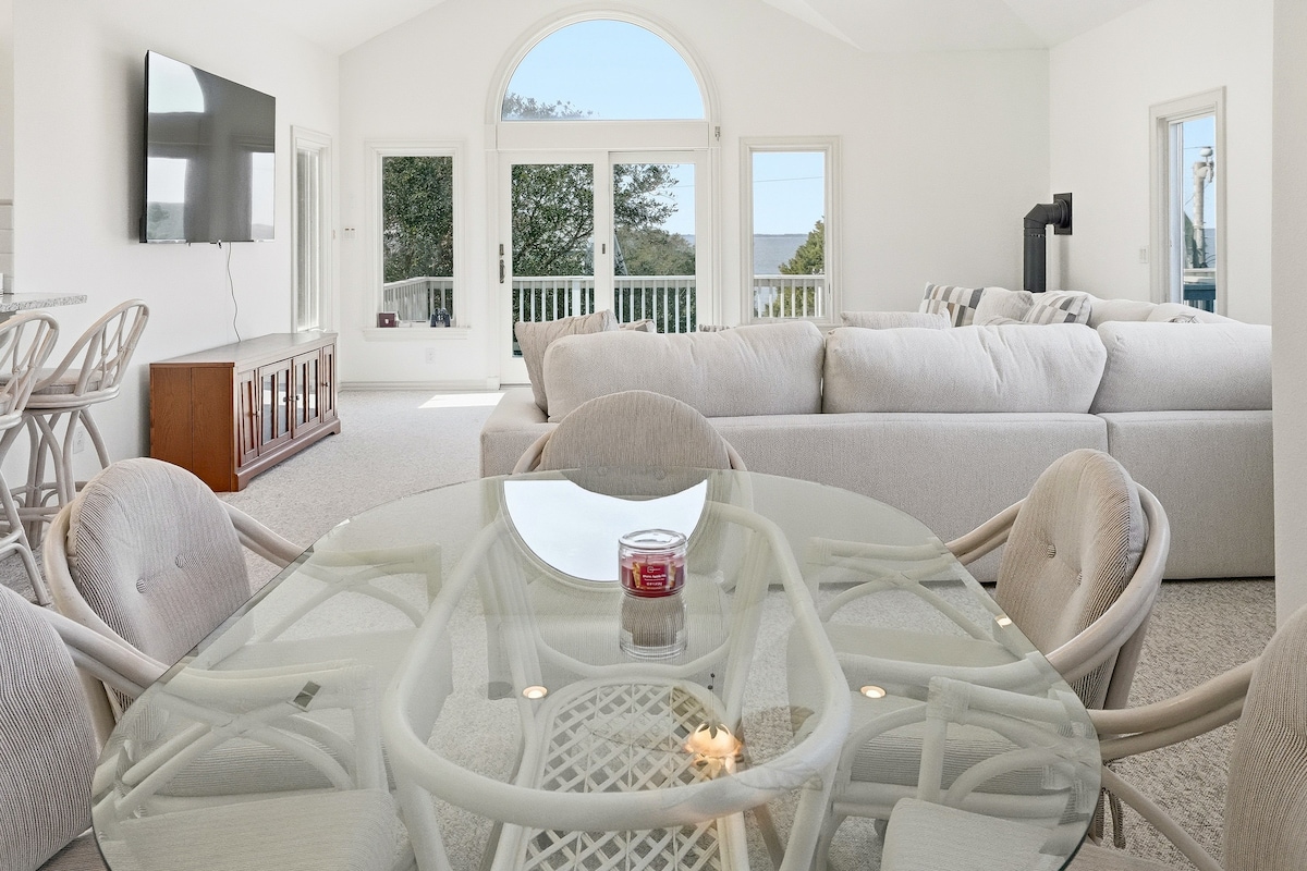 美しいサウンドビューと忘れられない夕日を楽しめる、ダックの快適で家族向けのセミサウンドフロントの家。リバースフロアプランは、ウォータービューを最大限に楽しめるように設計されたオープンリビングスペースが特徴です。寝室が3室と浴室が2.5室あり、リラックスして再会できる広さです。コミュニティビーチへのアクセスを楽しんだり、ホットタブでリラックスしたり、屋外シャワーで水を浴びたり、夕日後にファイヤーピットの周りに集まったりできます。アウターバンクスでゆったり過ごすのに最適な場所です。
