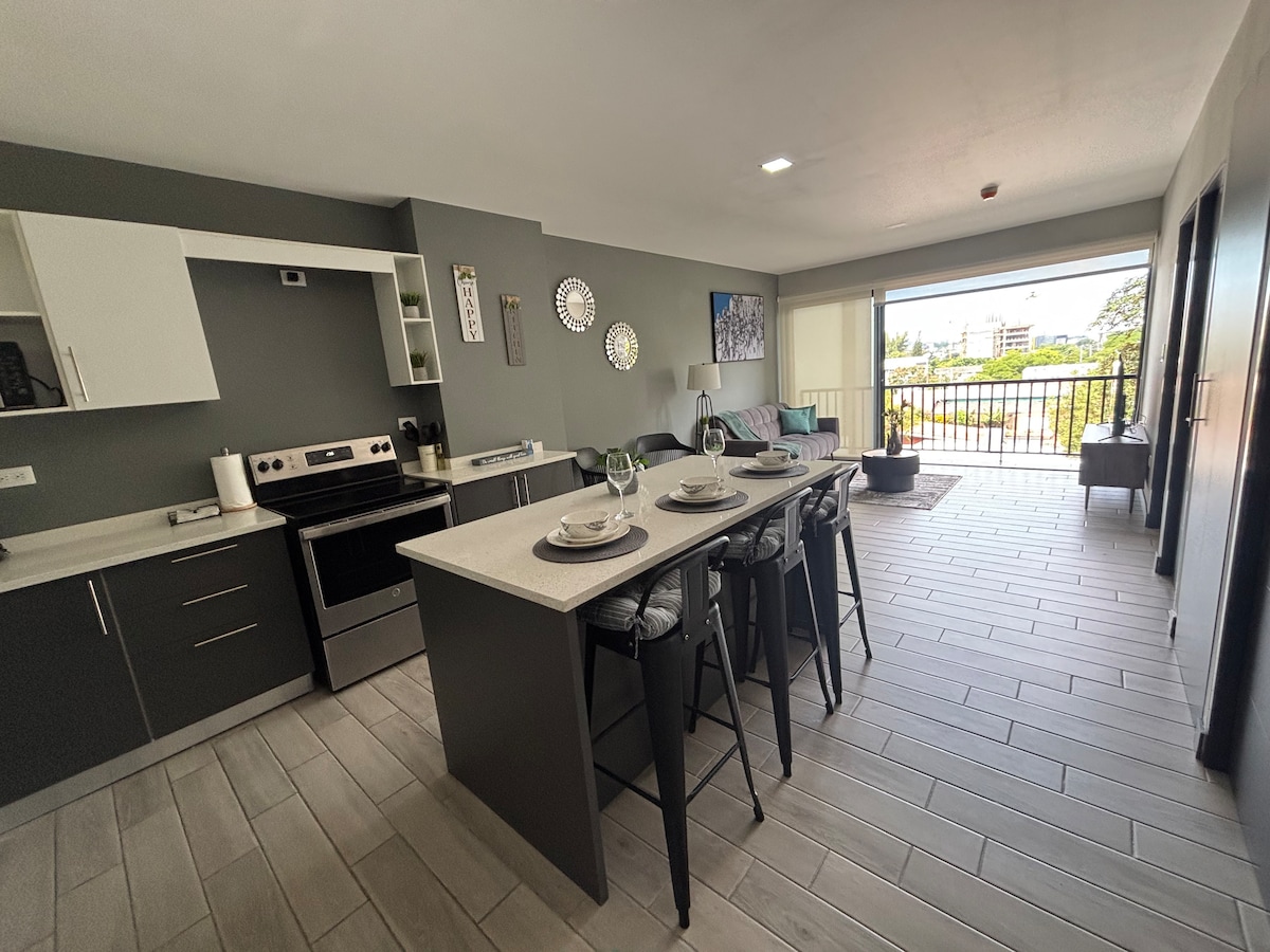 アンティグオ・クスカトランのモダンな宿泊先 ✨ 11階にあるおしゃれな1ベッドルームのアパートにご宿泊ください。サン・サルバドールの息をのむような景色をお楽しみいただけます。出張や長期滞在に最適です。また、街を散策する際の安全で快適な拠点としても最適です。 含まれるもの: ✔️ キングサイズのメモリーフォームベッド、遮光カーテン、リモートワーク用の机と椅子。 65インチのスマートテレビ、Alexa、ソファベッド(1.70 m)を備えた✔️モダンなリビングルーム。 設備・器具✔️のそろったキッチン パノラマビューを楽しめる✔️専用バルコニー ✔️ 駐車場と高速Wi-Fi