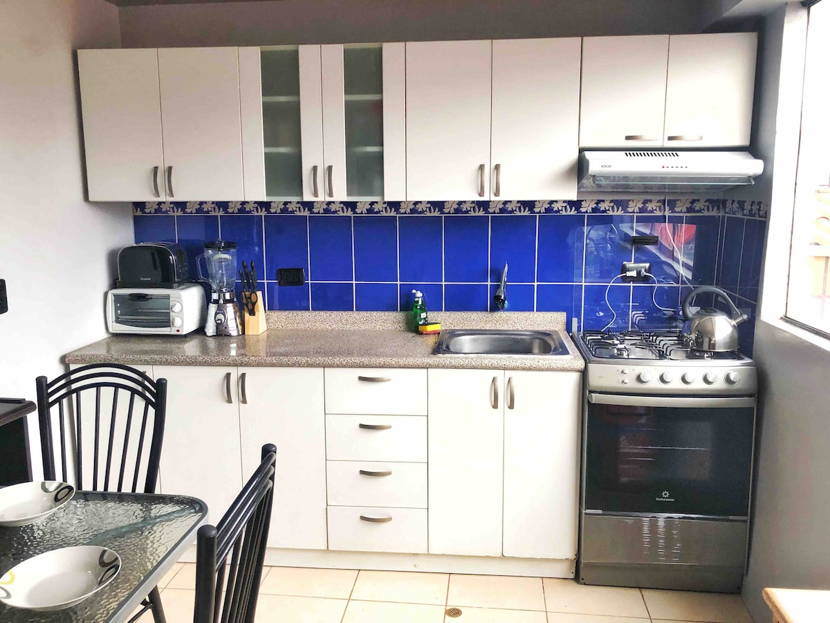 この独立したアパートは、私たちの家の2階にあり、最大5名様まで快適に過ごせます。安全な市街地にあり、歴史的な市内中心部まで徒歩25分、タクシーで8分です。明るい寝室3室と設備の整ったキッチン付きのラウンジがあり、クスコでの滞在をお好みに合わせてアレンジできます。キッチンと新しいバスルームには24時間お湯が出ます。