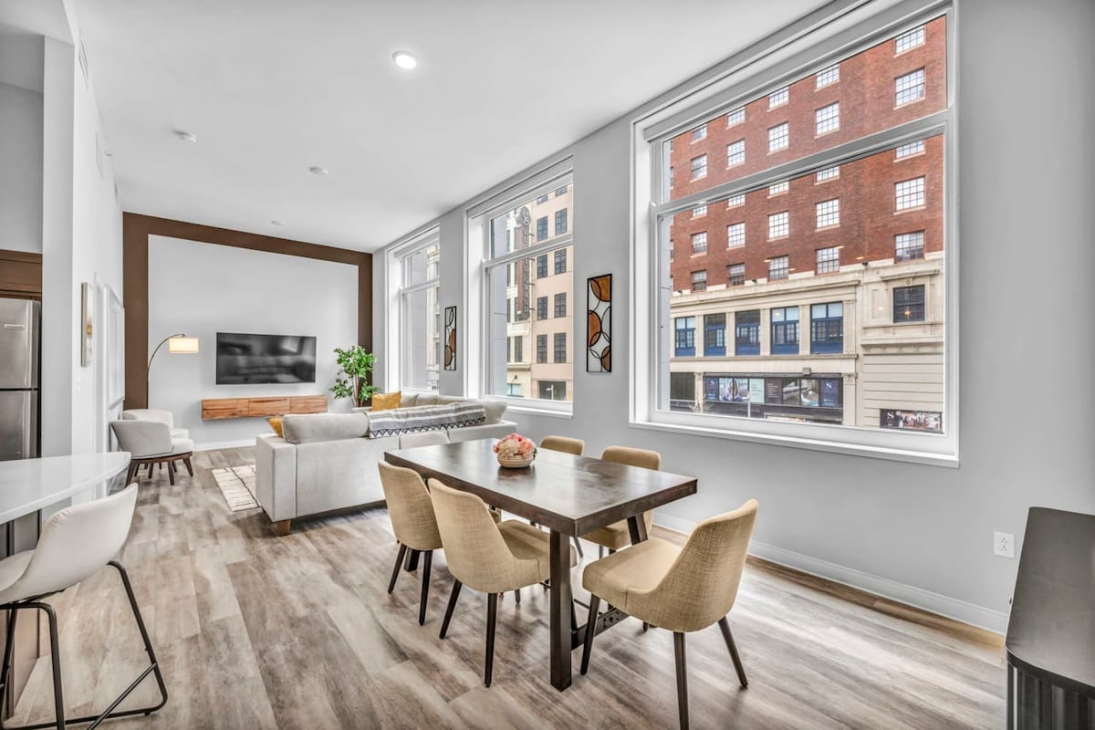 You can stop your search now. You just found the perfect place to book for your trip to Cleveland. â¹ Clean. Robust Amenities. Modern Finishes. Quick Host Responses. â¹ You're going to be located at the CENTER of everything in Downtown Cleveland. â¹ Get a good night's sleep with our memory foam beds. â¹ Spend your daytime working from home at our private home office. Cook a meal for your group in our beautiful, timeless kitchen. Then spend your evenings relaxing with our 65" Smart TV.