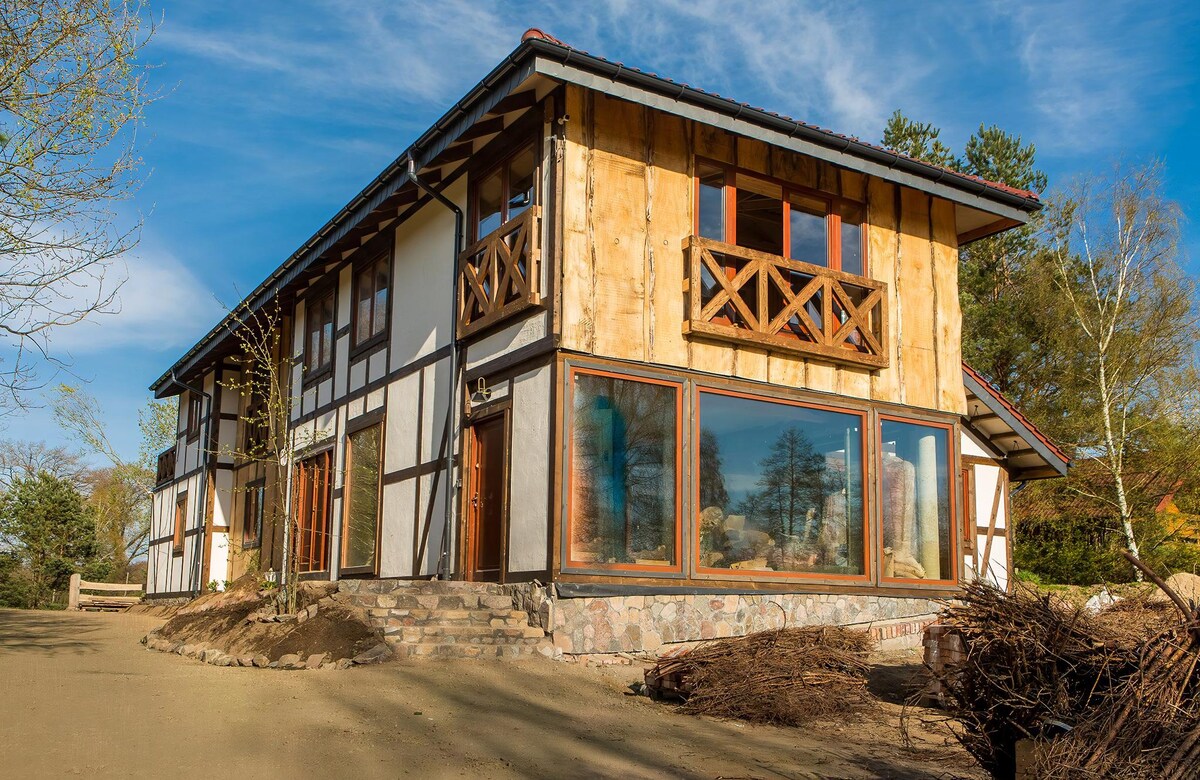 Dom zaprojektowany został w nadmorskim klimacie z dbałością o każdy detal. Pomieści sześć osób. Posiada jedną sypialnie z podwójnym, dużym łóżkiem oraz antresolę. Otwarty salon składa się z rozkładanej sofy, pełniącej funkcję noclegową dla dwóch osób, dużego stołu jadalnianego oraz wyposażonego aneksu kuchennego z lodówką, zmywarką i piekarnikiem. W domku jest również kominek, z którego można korzystać w okresie jesiennym – od września. Na zewnątrz jest duży taras oraz prywatny grill.