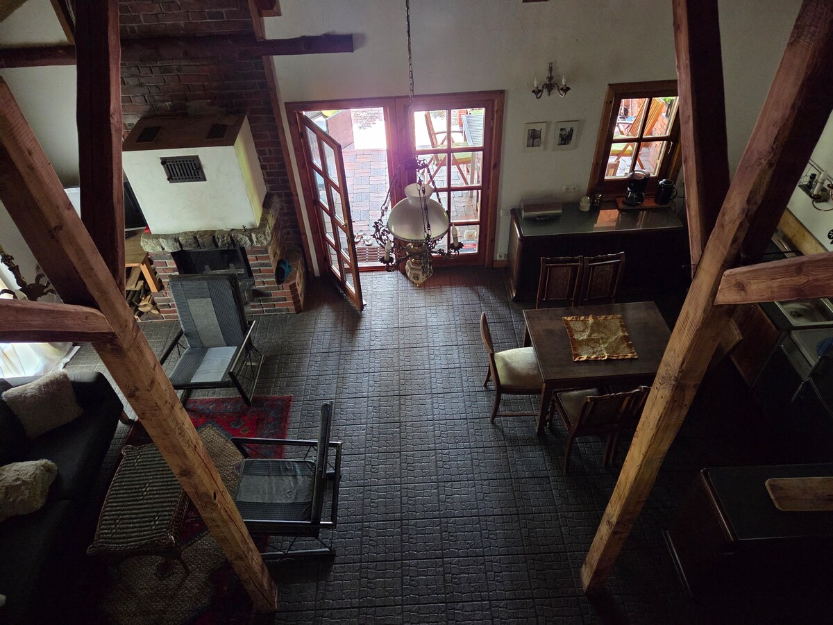Nowoczesne i przestronne wnętrza na skraju lasu, w otoczeniu natury. Jeśli chcesz spędzić czas w spokojnej, chillowej atmosferze (oglądając film na projektorze czy biorąc relaksacyjną kąpiel z widokiem na przyrodę) to miejsce idealne dla Ciebie. Trzy dwuosobowe sypialnie; przestronny salon z rozkładanym narożnikiem; w pełni wyposażona kuchnia; dwie łazienki, taras i zewnętrzne jacuzzi do użytku w lecie. Zakaz organizowania głośnych imprez. Nie przyjmujemy grup samych mężczyzn.