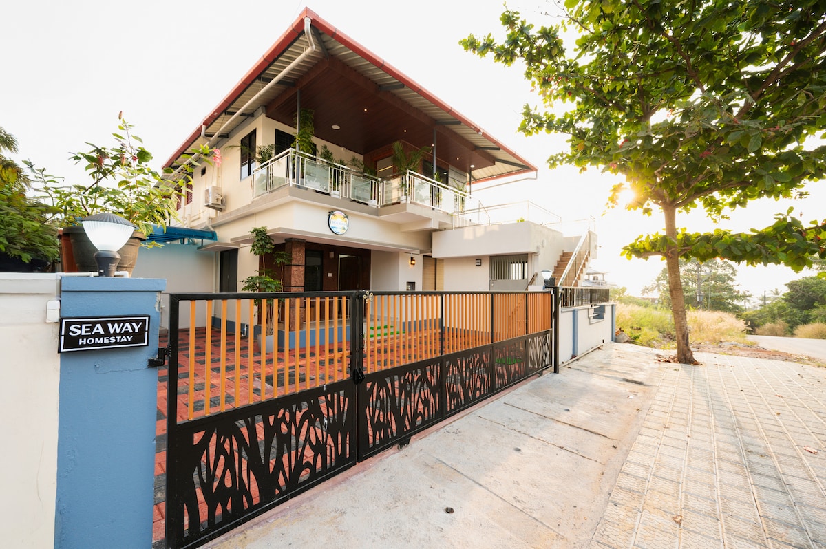 Sea Way Homestay is a peaceful beachside retreat perfect for families and groups. Enjoy comfortable 2BHK stays with AC, kitchen access, and ample parking. Just a short walk to the beach, it offers a relaxing coastal vibe. Complimentary breakfast is included, along with indoor and outdoor firecamp/grill options. Backup power & Wifi ensures uninterrupted comfort. Extra beds can be arranged. On request, special homemade masala seafood dishes can also be arranged.