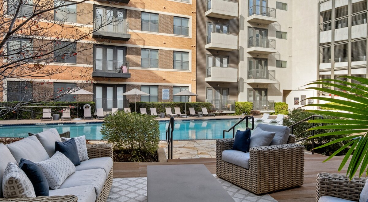 ダラスのダウンタウンにある豪華な1寝室アパート、無料駐車場、Wi-Fi