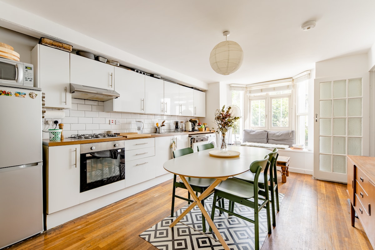 1階にある2階建てのメゾネットで、素晴らしい木々と低木がいっぱいの庭があります。 この空間はミッドセンチュリーの特徴を持ち、英国のモダニズムとスカンジナビアのデザインの両方に触発され、居心地の良さと機能性の両方を実現するために慎重に改装されています。 下の階には、設備の整ったキッチンと庭を見渡せる居心地の良いリビングエリアがあります。 2階には、スーパーキングサイズベッドと温かみのある仕上げのリラックスできるメインベッドルームがあります。 2つ目の寝室には快適なキングサイズのベッドがあります。(英国サイズ)