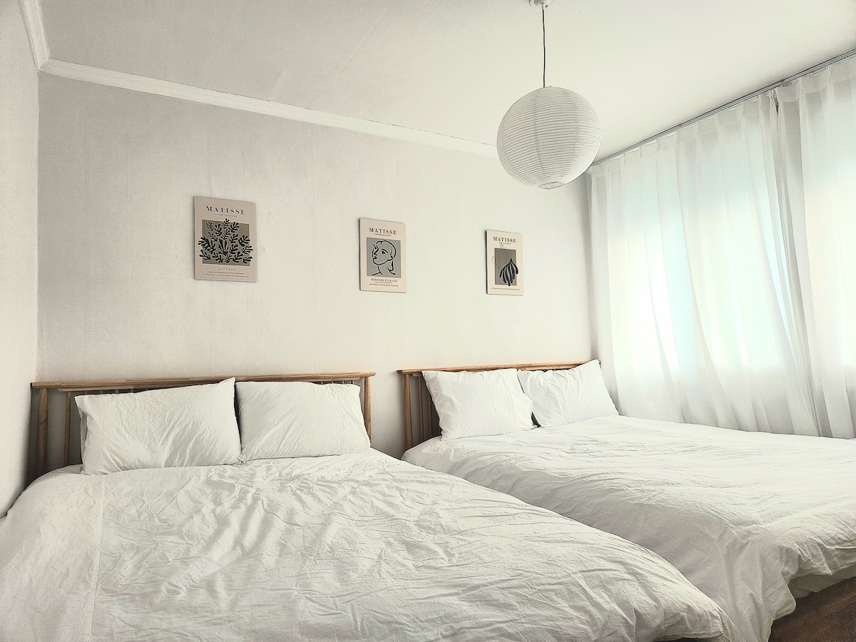 ✔️ 最近改装された24坪(専用面積18坪)のアパートです。 ✔️建設マンションにもかかわらず、駐車スペースが十分にあり、便利です。 ✔️ リビングルーム1、ベッドルーム2、トイレ1、キッチン1で構成されており、快適に過ごすことができます。 ✔️ 基本:クイーンサイズベッド1台/クイーンサイズトッパー1台 (4名様以上の場合はマットレストッパー1枚を追加でご用意します) ✔️アーリーチェックインとレイトチェックアウトには1時間あたり10,000ウォンの追加料金が発生します(事前のお問い合わせが必要です) ✔️商店街が良いので、滞在するのに便利です。 (ロッテマートワールドカップ店徒歩10分/食材マート徒歩3分/焼肉通り徒歩7分) ✔️ 1階なので、お子様連れでも階の騒音を心配する必要はありません。 ✔️ Wi-FiとスマートテレビでYouTube、Netflixなどを視聴できます。(ゲストのアカウントログインが必要です)