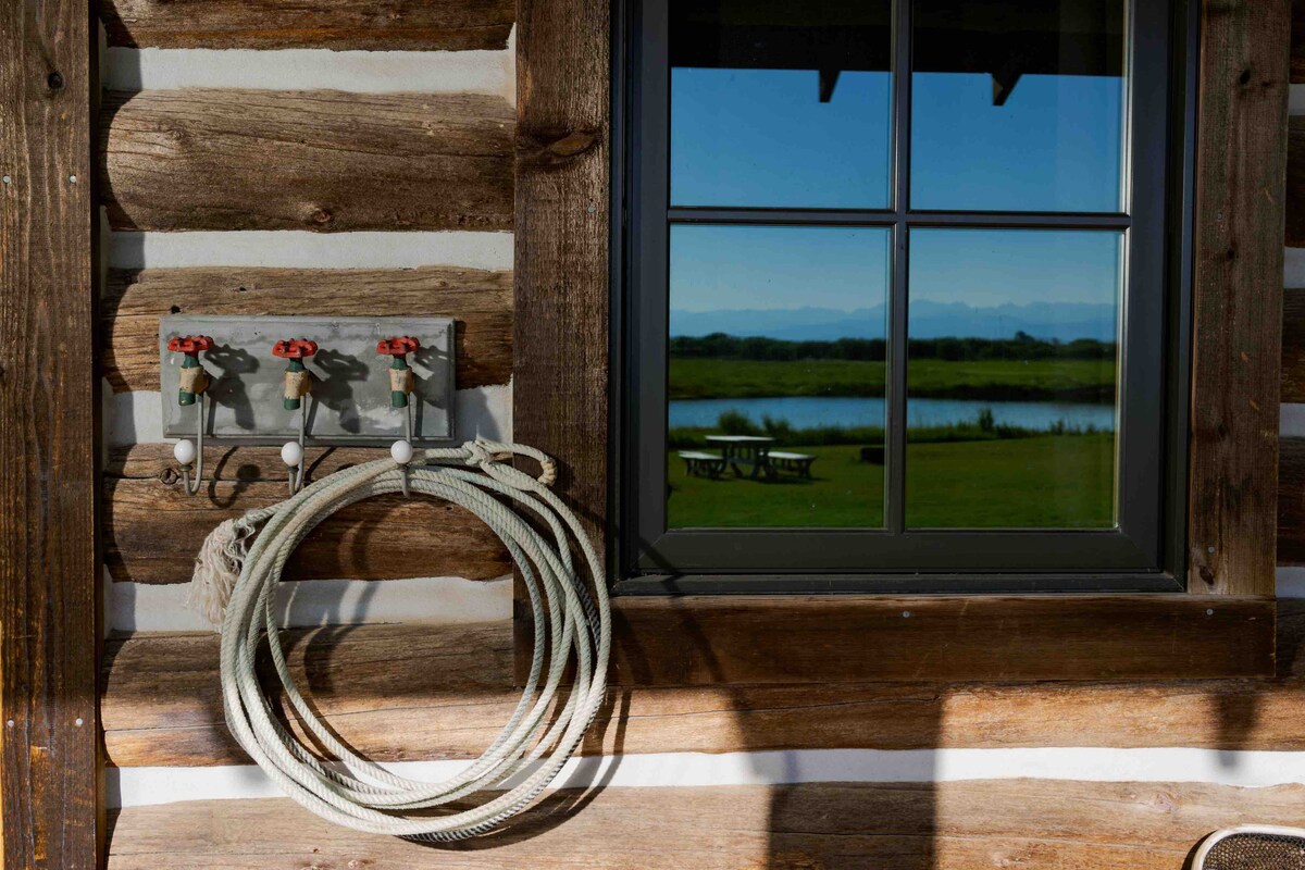 3つの山脈を望む歴史的なログハウス