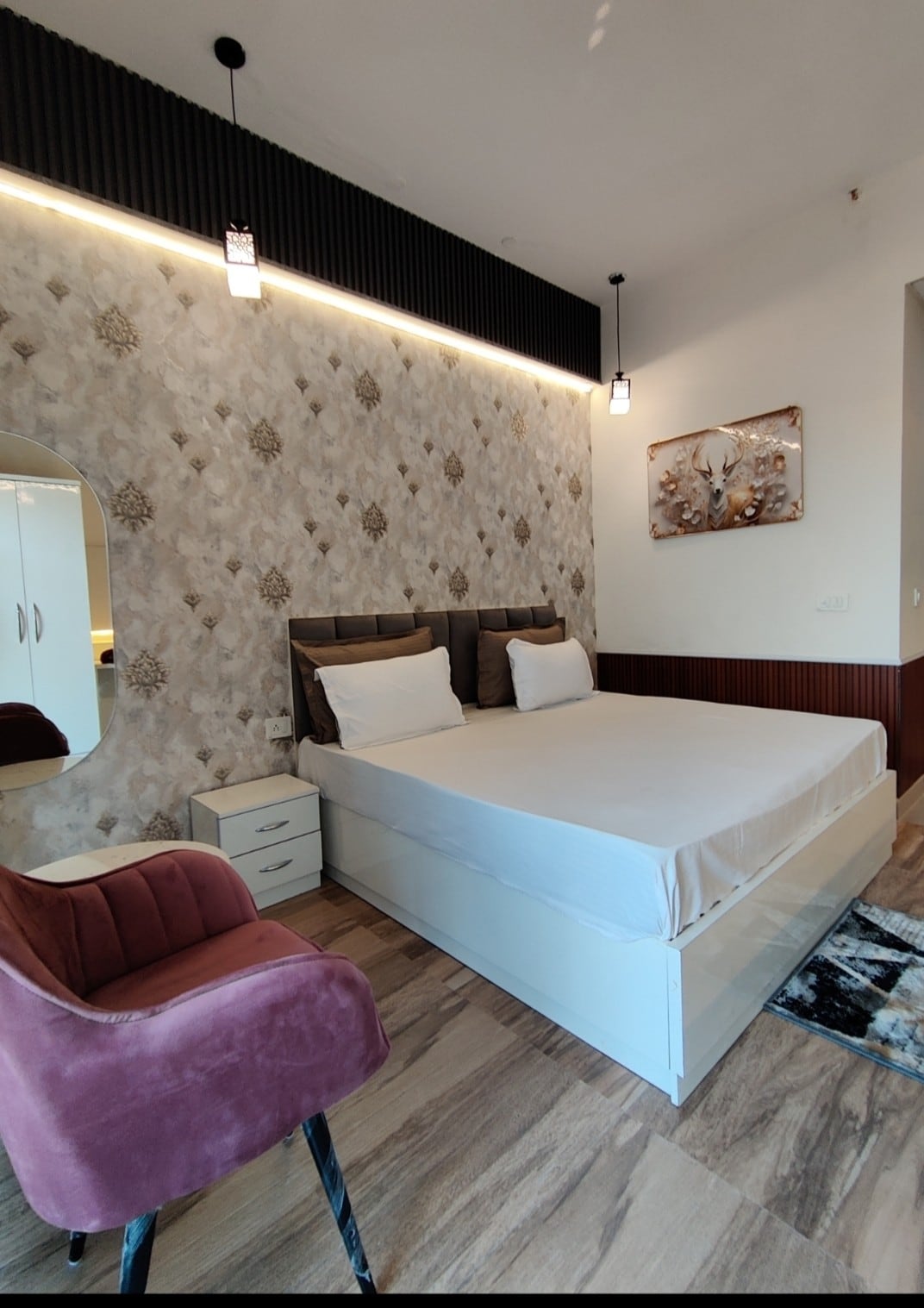 新築の2 BHKアパートは、モダンな快適さと自然の魅力を兼ね備えています。 このスペースには、クイーンサイズベッドを備えた2つの静かなベッドルーム、広々としたリビングルーム、設備の整ったキッチン、2つのバスルーム(1つはマスターベッドルームに付いており、もう1つはリビングルームと2つ目のベッドルームからアクセス可能)、L字型のバルコニーがあり、素晴らしい街の景色を楽しむことができます。 この宿泊施設はノイダの高級モールの近くにあります! この便利な立地は、ショップ、カフェ、エンターテイメントの利便性を提供します。