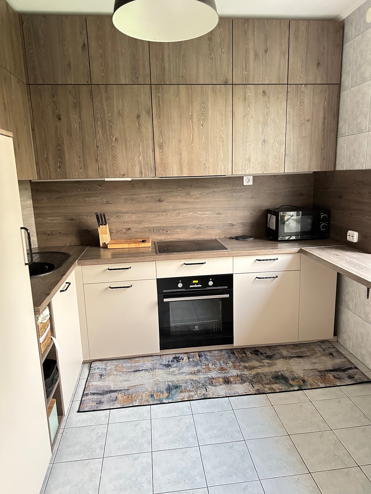 This stylish place , just after the complete renovation is perfectly designed to satisfy all your needs . Fully equipped kitchen with dishwasher , oven and microwave, filtered drinking water, kettle , and more . A washing machine and tumble dryer and iron is also at your needs. Master bedroom has king size bed , large corner wardrobe, and an access to the balcony. Living space has large corner sofa bed , perfect for a couple . Close proximity to shops and public transport,7 min drive to centre