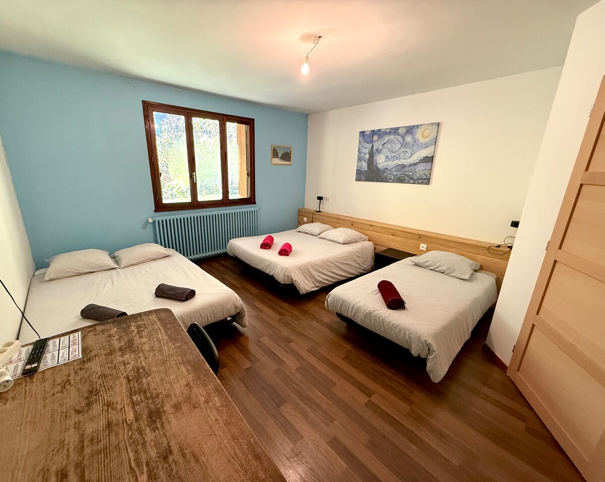 Comfort room offers a cozy atmosphere, contemporary decor, and quality bedding for one or two people. Efficient air conditioning and free, unlimited fiber optic wifi ensure a relaxing, well-connected stay, with bed type subject to availability.