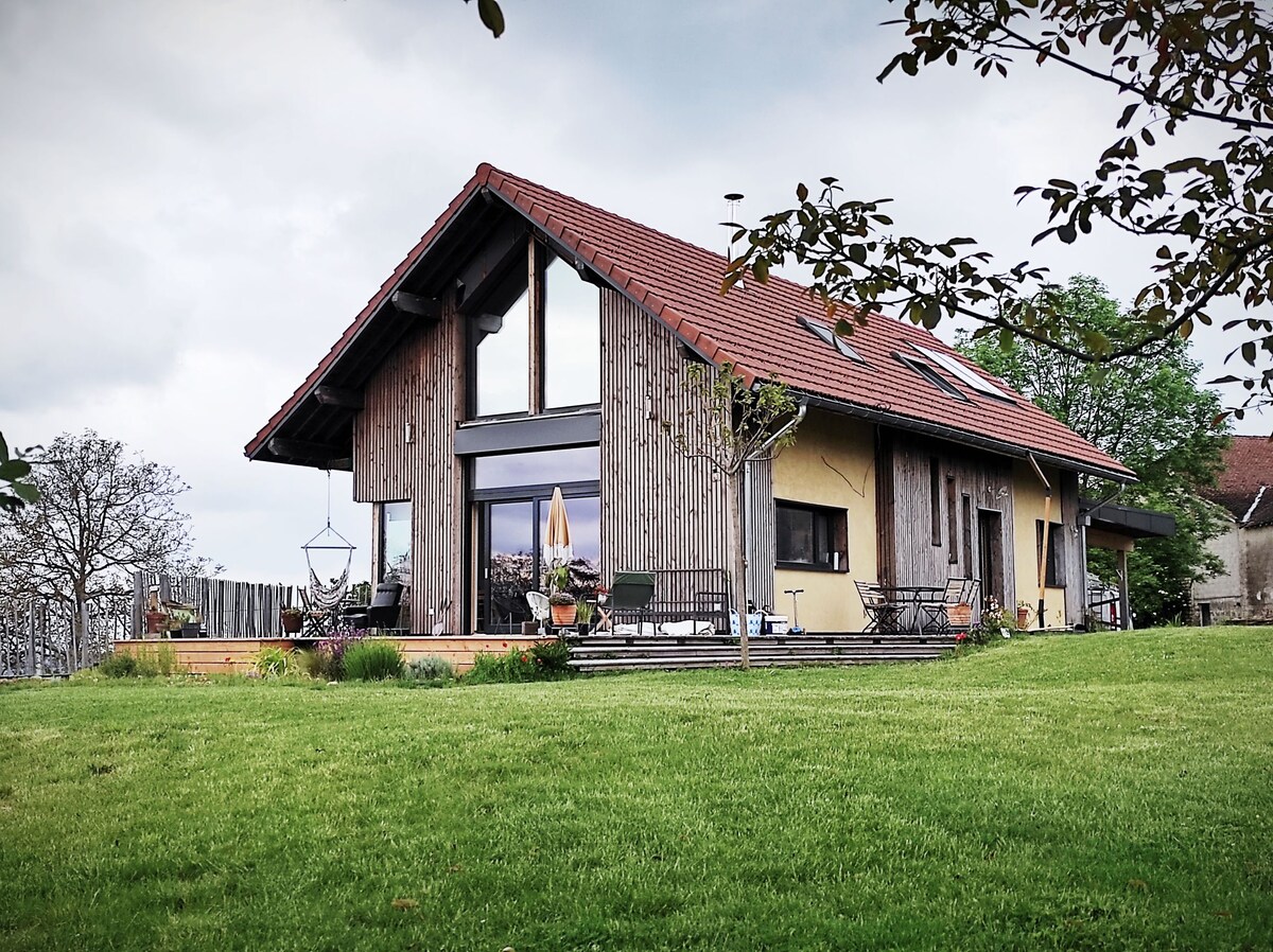 ローヌ川と湖の素晴らしい景色。リヨンから25分。 独立した庭付きヴィラ、広い部屋、ベランダ、ジャグジー/サウナは200ユーロ/家族2日間の連続滞在でご利用いただけます。プール、釣り、湖での水上スキーは無料です。 予約は最低2日間、7月と8月は最低7日間です。 料金は大人4名様の場合です。大人1名様につき40ユーロ、17歳未満の子供1名様につき30ユーロの追加料金が発生します。2歳未満の乳幼児は無料です。現地でお支払いください。訪問やパーティー、夜間騒音は禁止です。