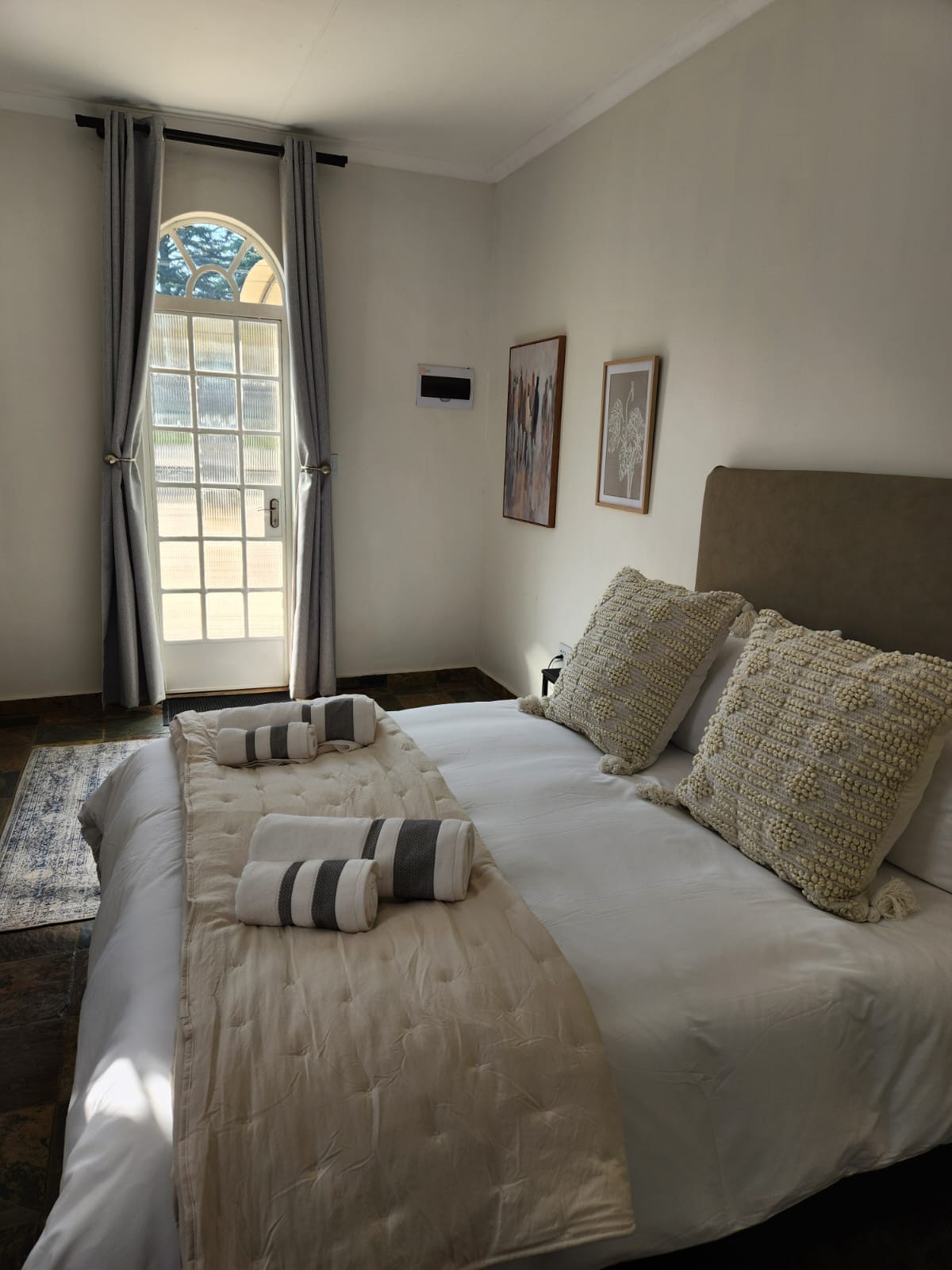 広々としたプライベートな2ベッドルームアパート、1バスルーム(シャワーのみ、バスタブなし)、基本的なキッチネットとラウンジエリア。リモコン式ゲートの後ろにある安全で安心な駐車場。アパートはLs JJ van der MerweとErmelo Hoërskoolに近いです。結婚式のゲスト用宿泊施設やその他のイベントにも最適です。エルメロは、Smithsfield、Florence Wedding Venue、Perdekraal Wedding Venueなどの結婚式場に最も近い町です。エルメロには素晴らしいレストランと24時間営業のドライブスルーテイクアウト、ショッピングのためのメリノモールがあります。