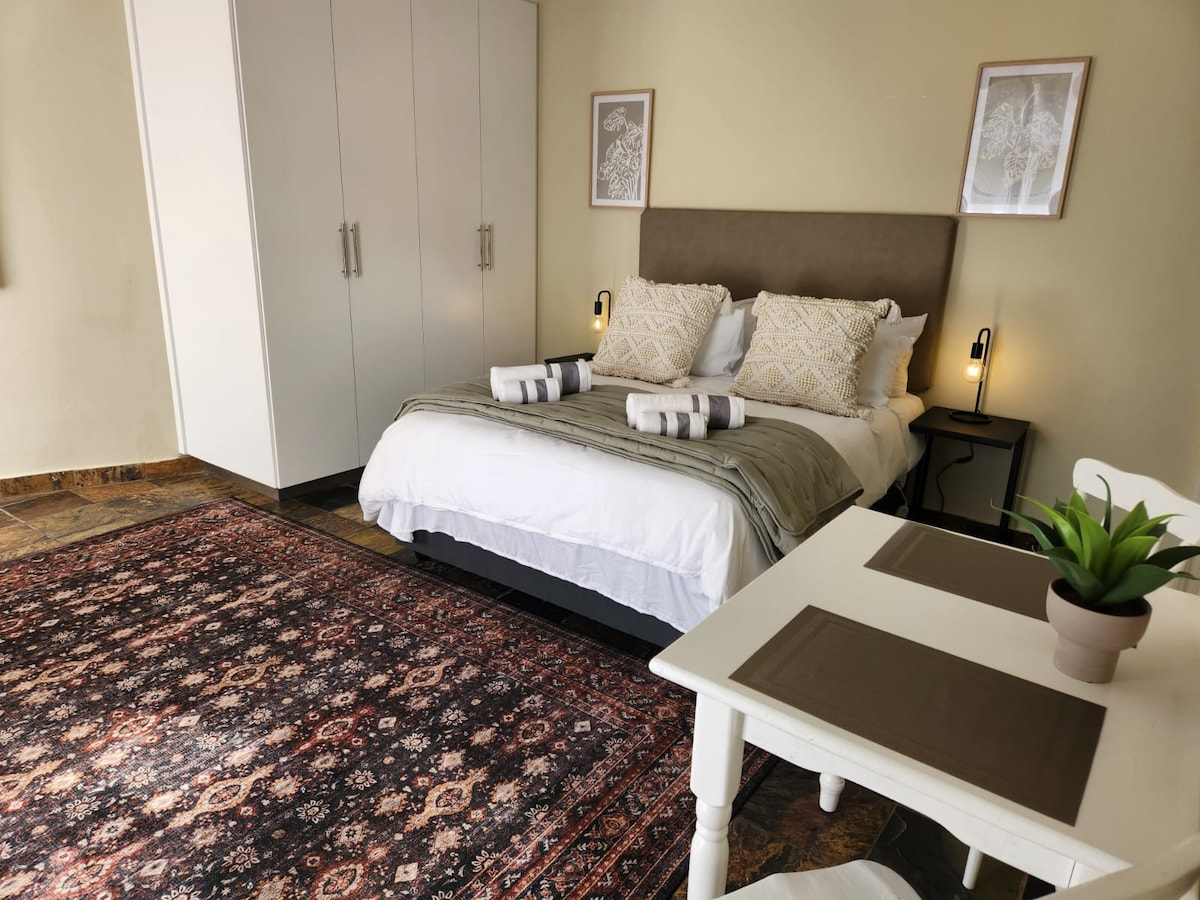 専用玄関がある魅力的な1ベッドルームアパートで、カップルやペット好きに最適です。 オープンレイアウト、ガスコンロとエレクトリックオーブンを備えた設備の整ったキッチン。 専用庭、禁煙、快適なクイーンベッド、警報システム、ハウスキーピング。 洗濯機が含まれていますが、バックアップ電源はありません。 車で5分の場所にあるEishレストランで使える食事券があります。 セカンダモール(3分)とサソルメインゲート(7分)、レジャーとコーポレートステイの両方に最適です。 静かな環境で快適さ、利便性、安全性を兼ね備えた滞在をお楽しみください。