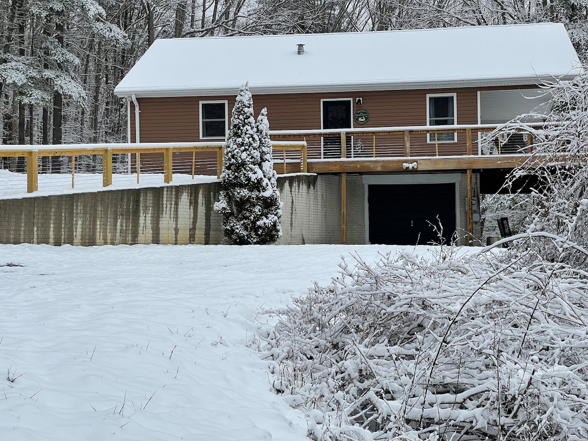 湖の景色を楽しめる、思い出に残る素敵なキャビンで、自然とのつながりを取り戻しましょう。 屋根付きの玄関先に座って、朝のコーヒーから夕方のワインまでお楽しみください。 設備の整ったキッチンとバスルームがあり、あらゆるニーズに対応しています。 下の階にクイーンサイズのベッドが1つ、ゲートのないロフトエリア(はしごでアクセス)にはツインベッドが2つあります。 DVD、本、ゲームのコレクションをお楽しみください。 ハニービーは、ワイルドで素晴らしいウェストバージニアへの日帰り旅行のアイデアがたくさんある場所の近くにあります。 私道/歩道に防犯カメラがあります。