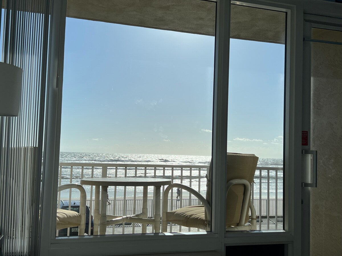ビーチからすぐの素晴らしいオーシャンフロントのコンドミニアム。 専用バルコニーに座って、お気に入りの飲み物を楽しみながら波の音に耳を傾けましょう。 新しいクイーンサイズのピロートップマットレス、折りたたみ式ベッド、リクライニングソファをご用意しております。 また、ケーブルテレビ(全チャンネル)と100 mpsのWi-Fiを備えた新しいサムスン55インチスマートテレビもご用意しています。 キッチンは設備が充実していますが、料理をしたくない場合は、アダムズエッグレストランが敷地内にあります。