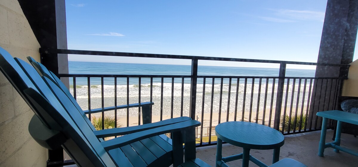美しい景色が楽しめるオーシャンフロントのスタジオコンドミニアム。座席付きの広い共有バルコニーがあります。現在の料金は、現在進行中の嵐関連の修理と一部のアメニティ・設備の閉鎖を反映しています。完璧さよりもビーチやオーシャンビューに近いことを重視し、課題を理解しているゲストに最適です。 最近オープンしたもの: **アメニティ・設備の営業時間• 午前8時~午後8時 • 屋外プール1つ • 屋内プール •サウススパ • フィットネスセンター/ジム • サウナ **ゲストポータルを通じて身分証明書を使用したメインゲスト登録が必要です。