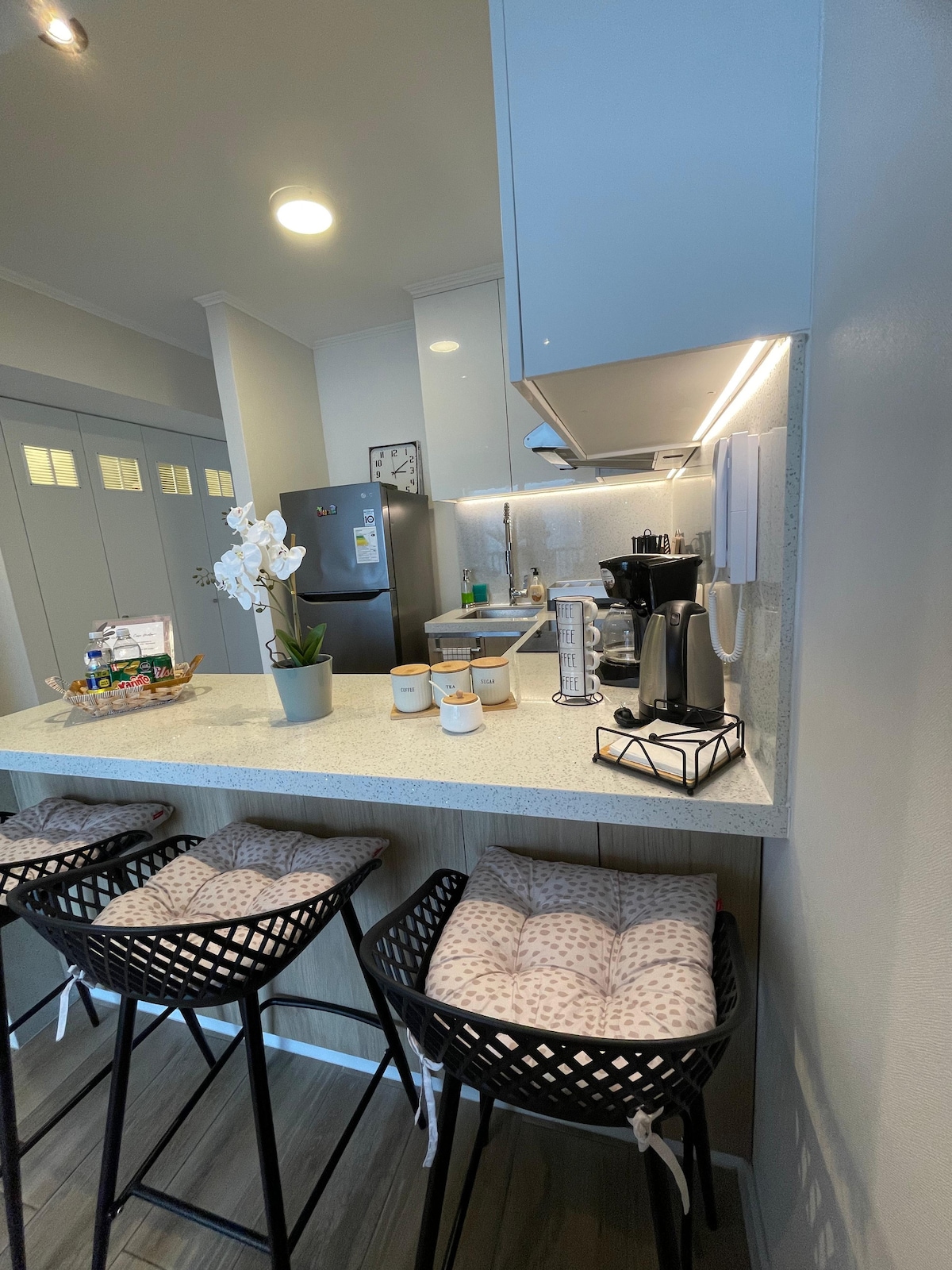 モダンで居心地の良いアパートで、エアコン、2つの部屋、設備の整ったキッチンが備わっています。1階には緑地、プール、ジム、ランドリーがあります。海から2ブロックの絶好のロケーション。ため息橋を歩いてビーチに行くことができます。 静かなエリアですが、バー、レストラン、良い音楽の近くです。