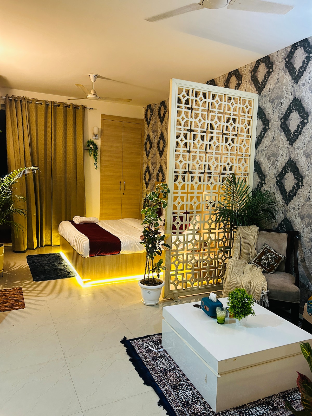 ヴリンダバンにある設備の整ったワンルームアパートは、豪華で快適な高級住宅地です。 モダンなキッチン、冷蔵庫、スマートテレビ(OTT)、高速Wi-Fi、エアコン、ボードゲーム、アイロン、公園に面したバルコニー、無料駐車場を備えた家具付きの家でのシームレスなセルフチェックインをお楽しみください。 寺院へのアクセスも簡単です。 プレム・マンディル(2.4 km) ISKCON(3.4 km) バンケ・ビハリ(7 km) ラダ・ヴァラーブ(4.7 km) チャンドロデイ(2.7 km) ゴバールドハン(25 km)