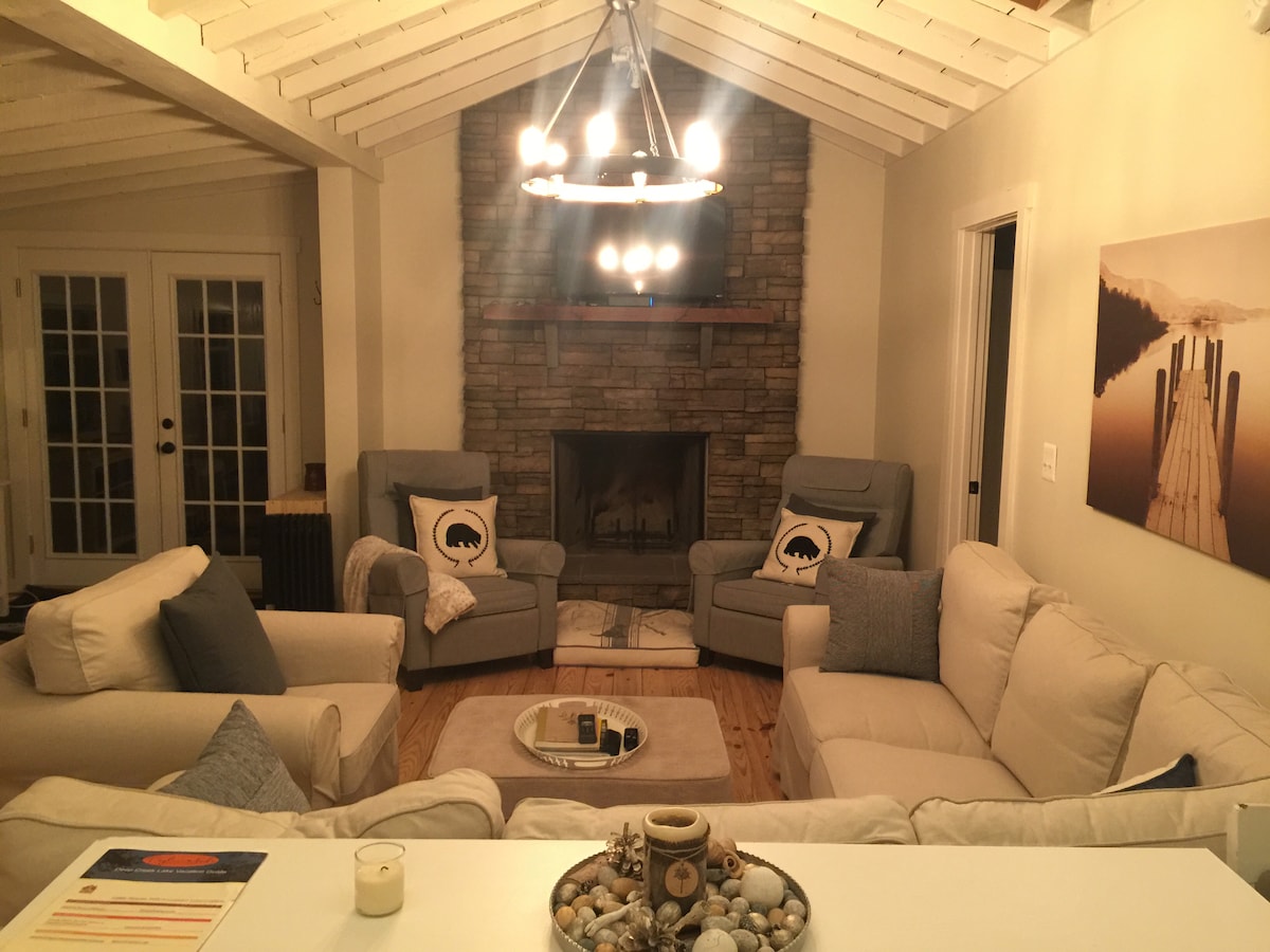 この居心地の良いコテージは湖畔にあり、スキー場まで徒歩圏内です!! 多くのレストランやカフェ、ナイトライフスポット、冒険に満ちたアクティビティ、ショッピング、映画、ゴルフまで車ですぐです。 ゲストはカヤック、カヌー、炭火グリル、ピクニックテーブル(収納エリア内)、ファイヤーピットをご利用いただけます。 家の中は快適で、ボードゲームやパズルをご利用いただけます。 ファミリールームには新しい42インチテレビがあり、マスターベッドルームにもテレビがあり、Wi-Fiが提供されています。