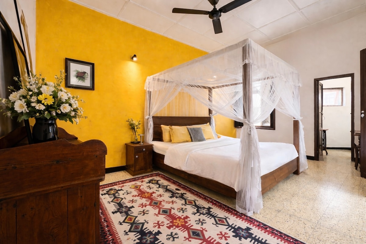 As Superhosts since 2013, we’ve welcomed guests worldwide with warm care and high standards. The White Room in our upstairs apartment offers a king bed, a private en-suite, and a charming library corner. AC and fast Wi-Fi. Enjoy a shared sitting area, dining space, and mini-kitchen. Why not wake to a home-cooked breakfast in one of Colombo 7’s most charming neighborhoods? We live downstairs, reassuring you to know help is on hand, while your upstairs unit has independent access.