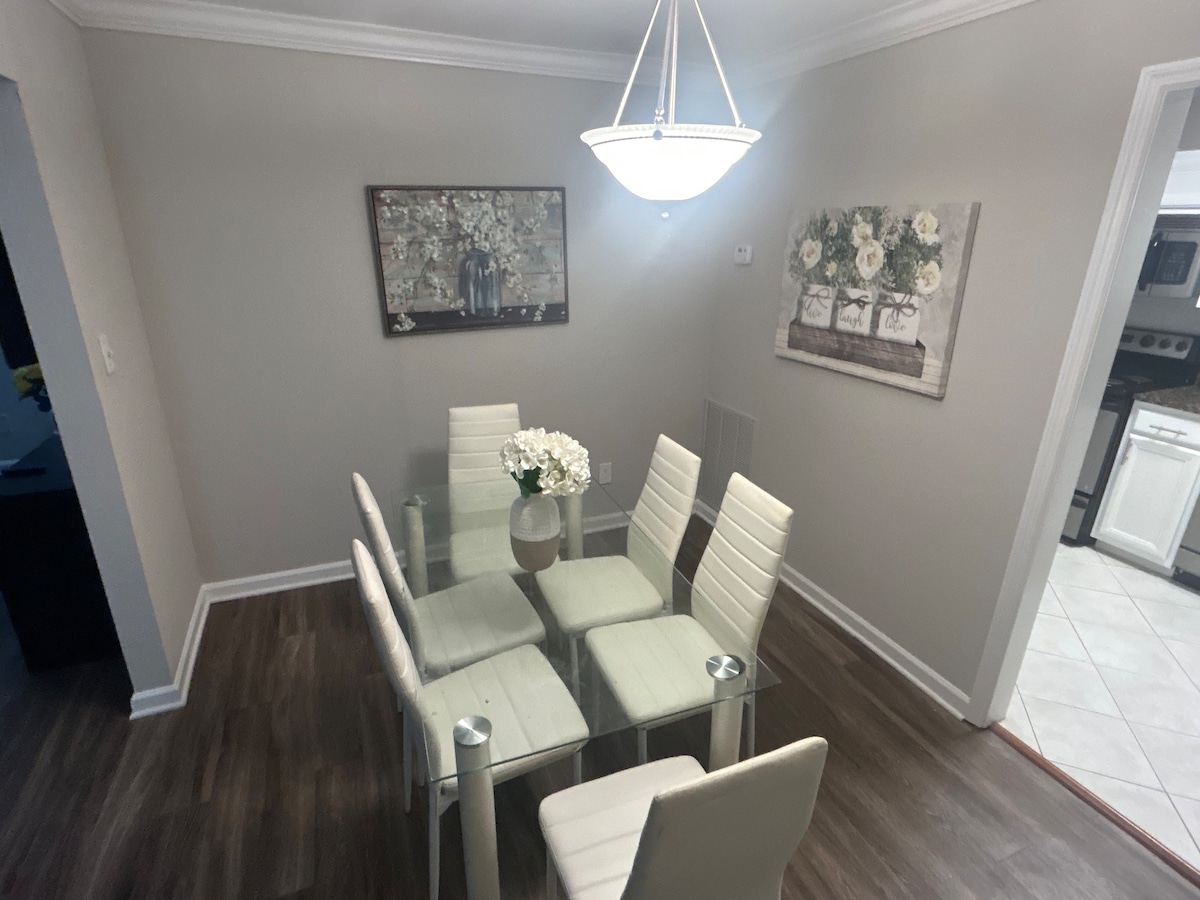 こちらのおしゃれな宿泊先は、団体旅行、少人数の親しいグループ、またはおひとり様の旅行にぴったりです。 お子様連れにもとても適した宿泊先です。 完全なプライバシーと独占性を備えた、ご自宅のような豪華な宿泊先をご体験いただけます。 この家はアトランタのミッドタウン/ダウンタウンエリアから18分の場所にあり、見どころがたくさんあります。 このスペースは、ホストの承認を得て集まりやパーティーをすることができ、8人が快適に寝ることができます。