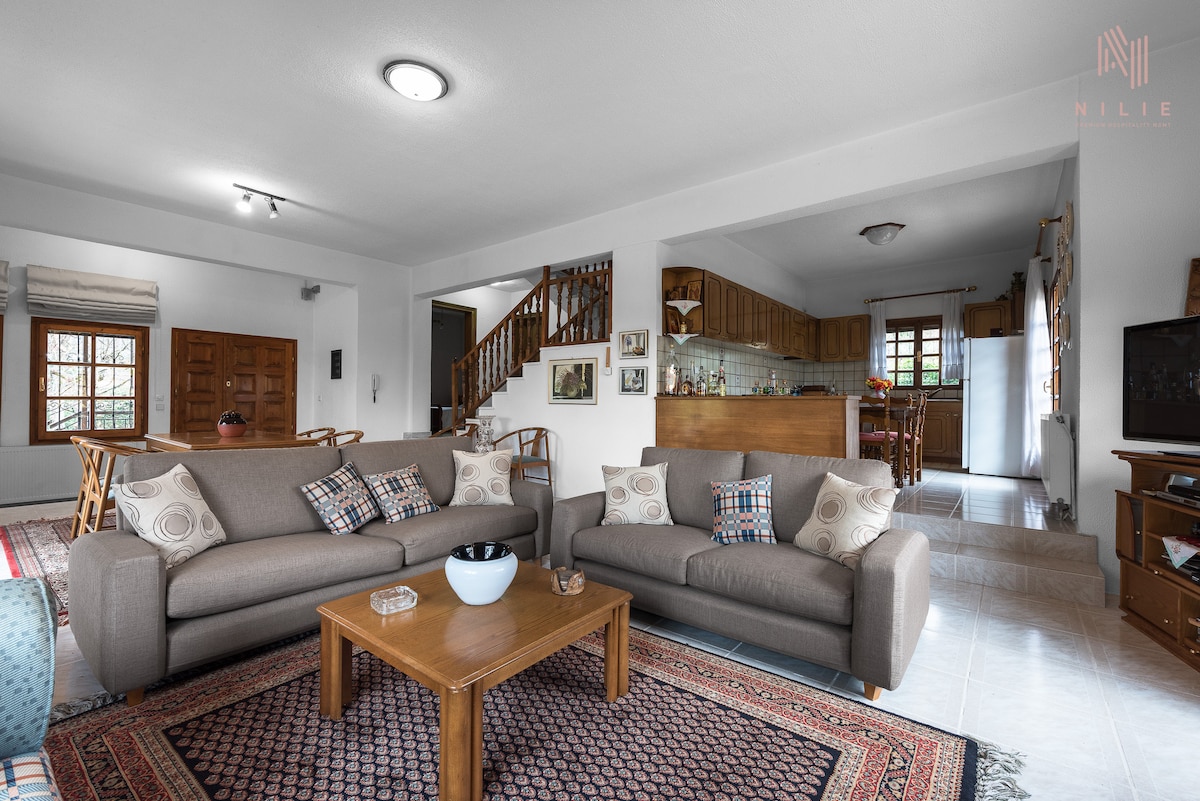 クラシコへようこそ。フォウスタニ、ペラにある素朴な2階建てのヴィラで、美しい山の景色を楽しめます。1階には居心地の良いラウンジエリアと設備の整ったキッチンがあり、2階には3つのベッドルームがあり、最大6名様まで快適にご宿泊いただけます。自然に囲まれ、バーベキューと屋外キッチン、そしてシックなキオスクを備えています。Classicoでリラクゼーションと伝統的な魅力を体験しましょう!