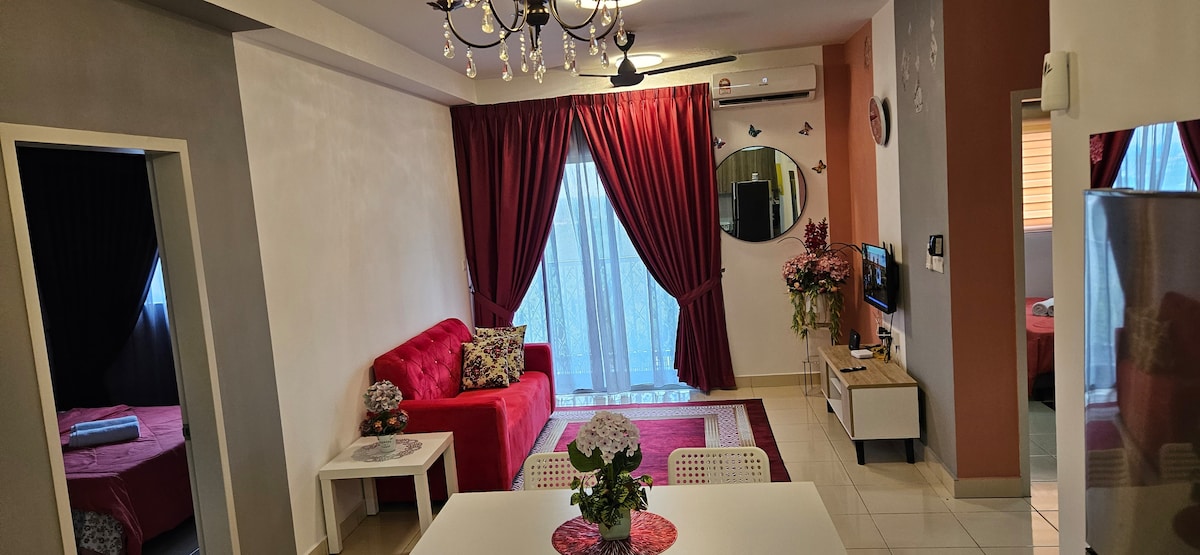この1ベッドルームのミニマリストユニットは、清潔でモダンな雰囲気の心地よいインテリアが特徴です。 寝室にはエアコン付きのクイーンベッドがあります。リビングエリアには、快適な座席、スマートテレビ、高速Wi-Fiがあります。 コンパクトなキッチン(冷蔵庫、電子レンジ、ケトル、食器類付き)。 KLIAまでわずか10分、三井アウトレットパークまで5分の場所に🏙️あり、プール、ジム、24時間365日対応のセキュリティなどの建物のアメニティ・設備を備えており、理想的なトランジットストップまたは短期のシティリトリートです。
