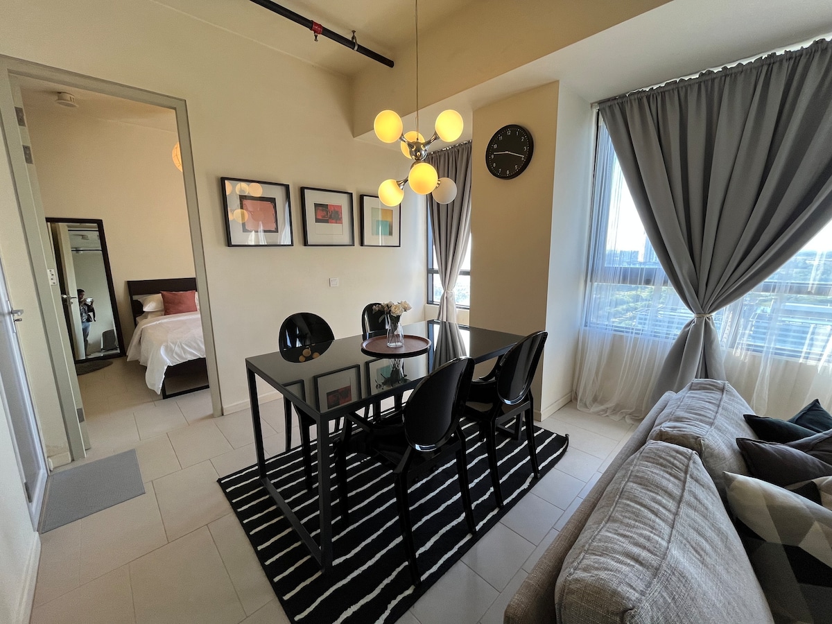 Spacious and intimate. As this is my 5th unit, we took a step up and lease a 1 bedroom suite with a cozy living area and dining area unit. With a majestic view of Cyberjaya from your window, nothing screams fantastic than this. Perfect for longer stay either for leisure or business. We are connected to Tamarind Square via a shaded walkaway with all the necessity that you need during your stay.