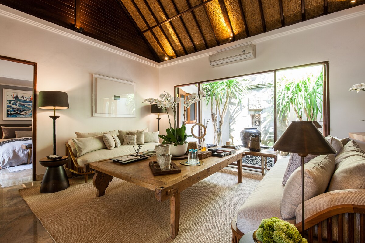 スミニャックの真新しいデザイナーヴィラ(寝室1室) •プールに直接アクセスできるスタイリッシュなエアコン付き寝室 •天然石の壁のバスタブを含む1.5バスルーム •専用のターコイズブルーのプールと緑豊かな庭園 •モダンなオープンプランのキッチン&ダイニングエリア • 専用オフィスルーム • 床から天井までガラス張りの明るく風通しの良いリビングスペース • 高速300 MbpsのWi-Fi • 毎日の清掃、清潔なタオルとリネン • ご要望に応じてベビーベッドとハイチェアをご用意 • スクーター、送迎、スパ、ツアーのコンシェルジュサービス