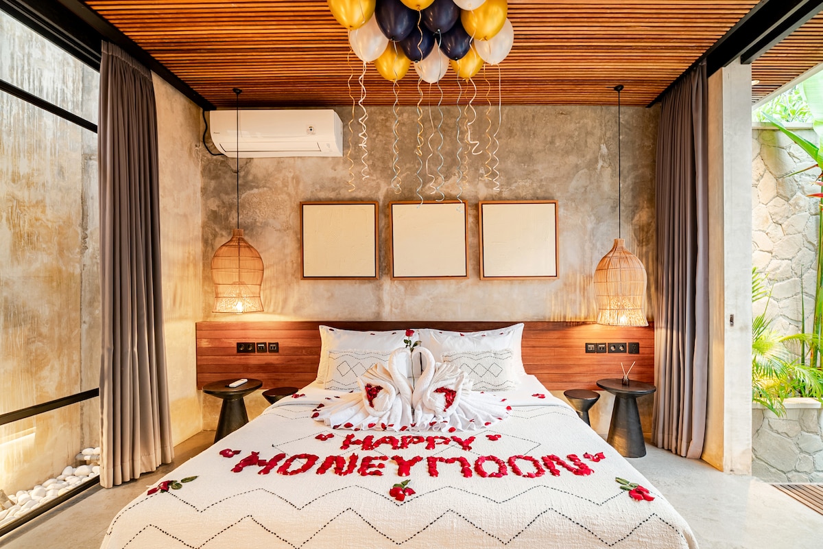 💖 Danu Villa Baliへようこそ。スミニャックにあるロマンチックなプライベートな聖域です! 💖 忘れられないひとときを過ごすために作られた、快適で美しく作られたヴィラに足を踏み入れましょう✨。50インチの4Kテレビ📺を備えたエアコン付きの寝室、心地よい温水シャワー付きのバスルーム🚿、きらめく専用プール💦、フルキッチン🍽️を備えたスタイリッシュなリビングスペースをお楽しみください。すべてのコーナーが、リラックスして、大切にされて、幸せな気分にさせてくれるようにデザインされています😍。 🌴✨今すぐ、魔法のようなバリ島の旅をご予約ください!🌸