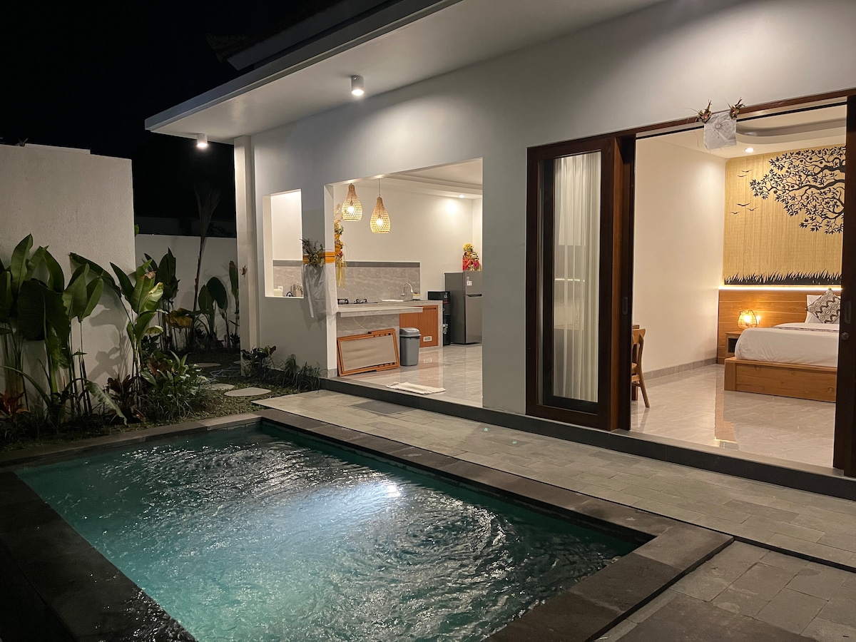 バリ島のプライベートな楽園へようこそ!この素晴らしい、完全に囲まれた1+ベッドルームのヴィラは、専用プールと伝統的なバリの魅力を備えた、完璧なロマンチックな休暇先です。究極のリラクゼーションのために設計されており、屋内と屋外のリビングがシームレスに融合しており、カップルや少人数のご家族でのお出かけに最適です。