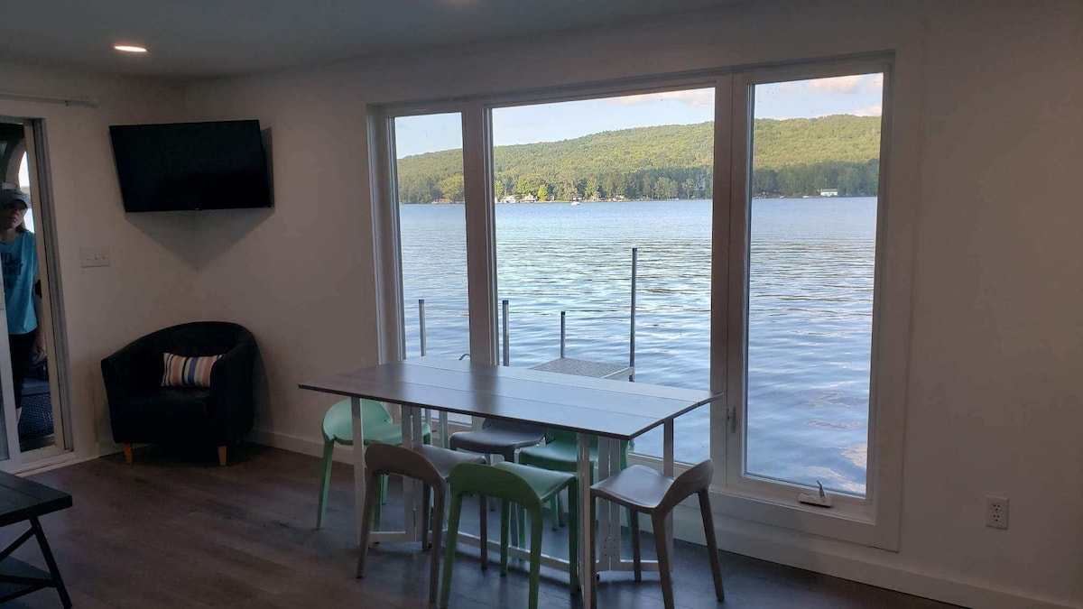 ソング湖の湖畔にあるプライベートな宿泊先です! 広々とした田舎の景色を満喫できます。 昼は紅葉の景色を楽しみ、夜は焚き火でリラックス! 専用デッキとドック-カヤックと釣り道具を持参してください! 設備・器具のそろったキッチン。屋外ガスグリル。オンコ醸造所まで5分。ヒューガアルパイン&ソングマウンテンまで2分。 冬はスキー/スノーモービル。 フィンガーレイクスのワイナリー、醸造所、スパには通年アクセスできます。魅力的なスカネアテレスのレストランやショッピングまで25分です。 コーネル大学やシルバースプリング大学を含む6つの大学の近く。