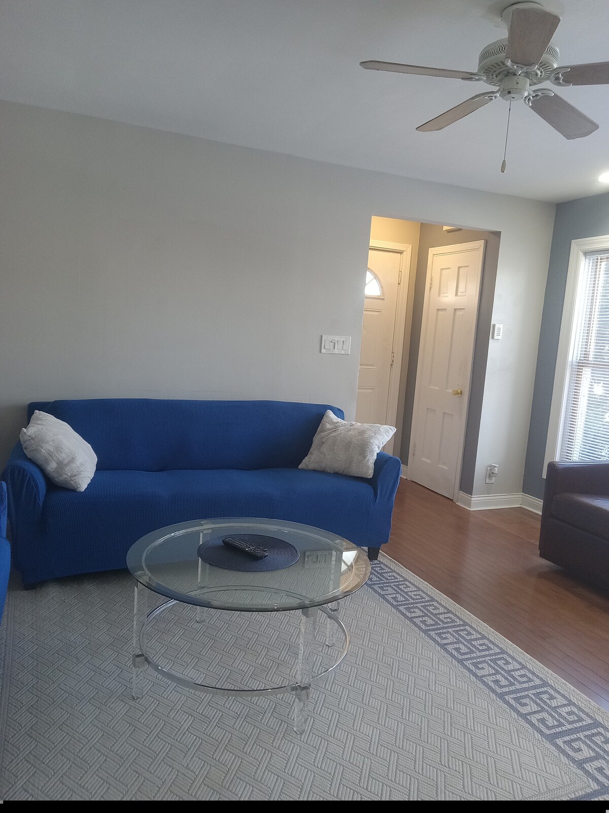 住まいの1階は清潔で開放的で、手入れが行き届いています。メインフロアとは独立した専用の出入り口があります。 スイートスタイルのお部屋には、大きなソファ2台を備えた広々としたリビングエリア、サウンドシステム付きの49インチスマートテレビ、キングサイズベッド、フルバスルーム、テーブル付きキッチネット、洗濯機・乾燥機、仕事用デスクが備わっています。 オヘア、オールステートアリーナ、ローズモント、リバーズカジノから5 ~ 10分の絶好のロケーションで、交通手段が充実しています。 宿泊施設は、食料品店、ジム、公園などから徒歩圏内です。