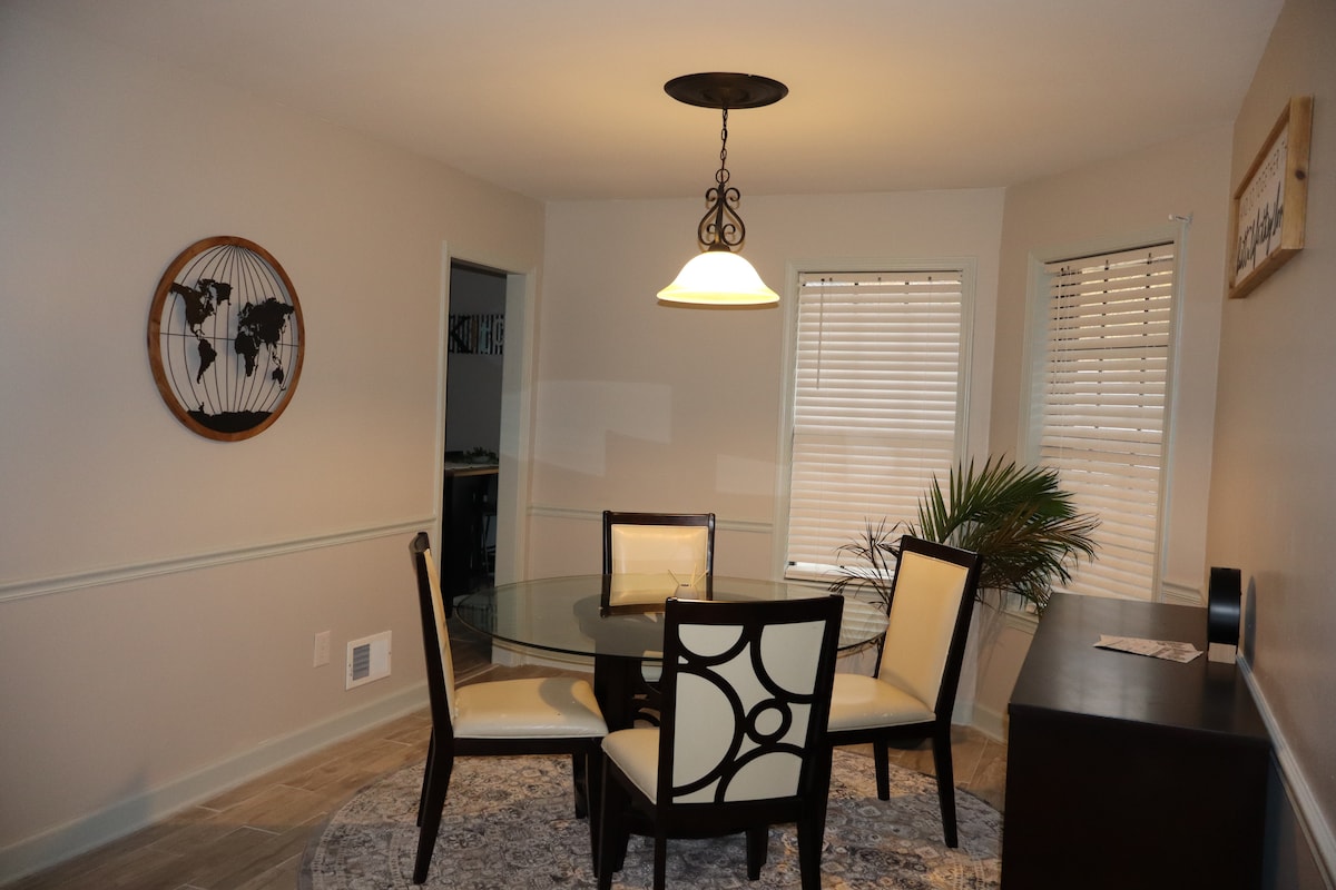空間 • リビングルームとオーナースイートにスマートテレビ • パティオセット付きの囲まれた裏庭 • 充実したキッチン • スマート洗濯機と乾燥機 • セントラルエアコンと暖房 • 車庫2台分と私道の駐車スペース • キーレスエントリー • 超高速Wi-Fi • 仕事専用スペース 宿泊予約 • オーナースイートにキングベッド • 他の寝室にはクイーンベッド その他の機能 • バスタブとシャワー付きのオーナースイート • ダイニングルーム • リクライニングソファ • 屋外の防犯・監視システム