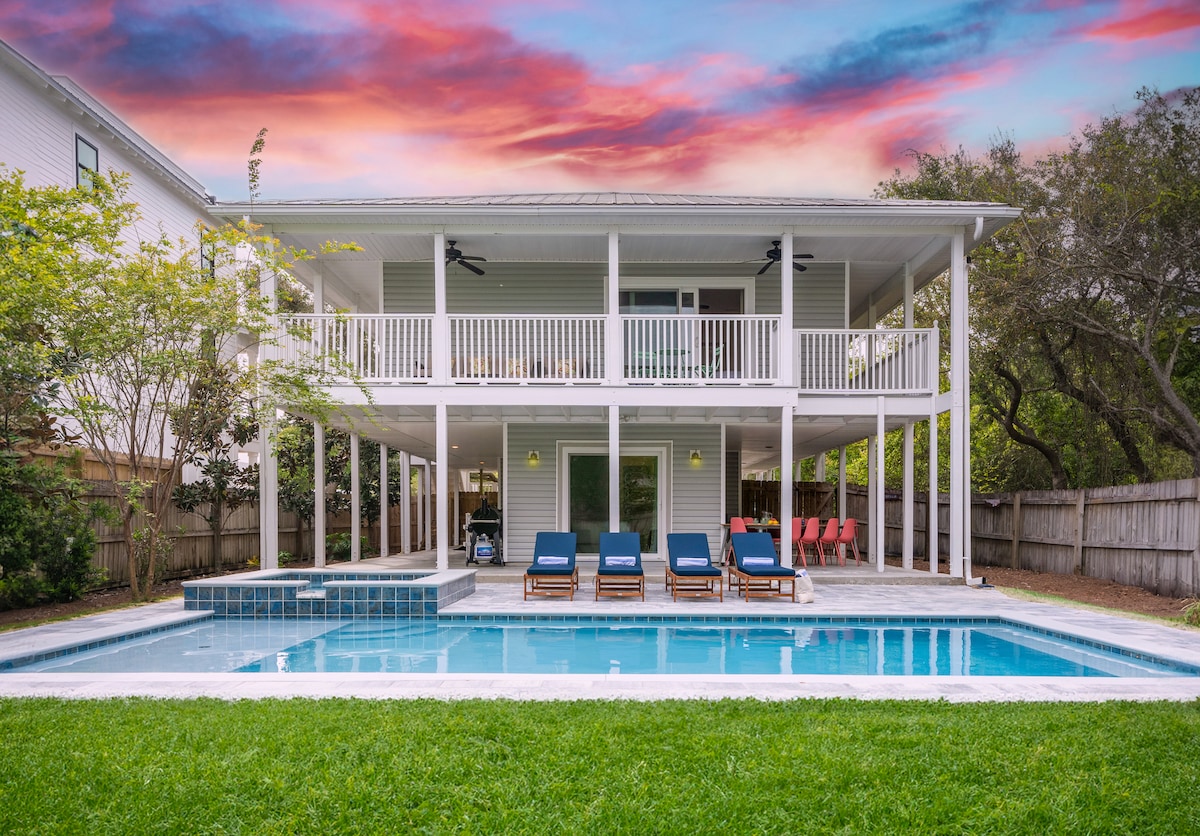 追加料金はありません。Airbnbのサービス料はこちらが負担しますので、安心してご予約いただけます。 -ビーチまで徒歩0.2マイル - プール、ホットタブ、広い芝生のある広々とした庭 - ラウンジャー、屋外ダイニングテーブル、グリルを備えたプールサイドパティオ - 屋外リビングエリアを備えた屋根付きデッキ - ビーチをテーマにしたインテリアのオープンフロア